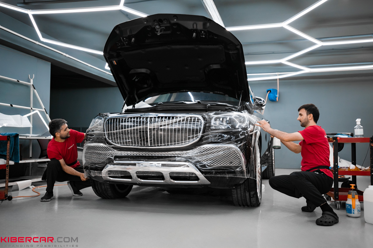 Решение: оклейка Mercedes-Benz Maybach GLS антигравийной полиуретановой пленкой.