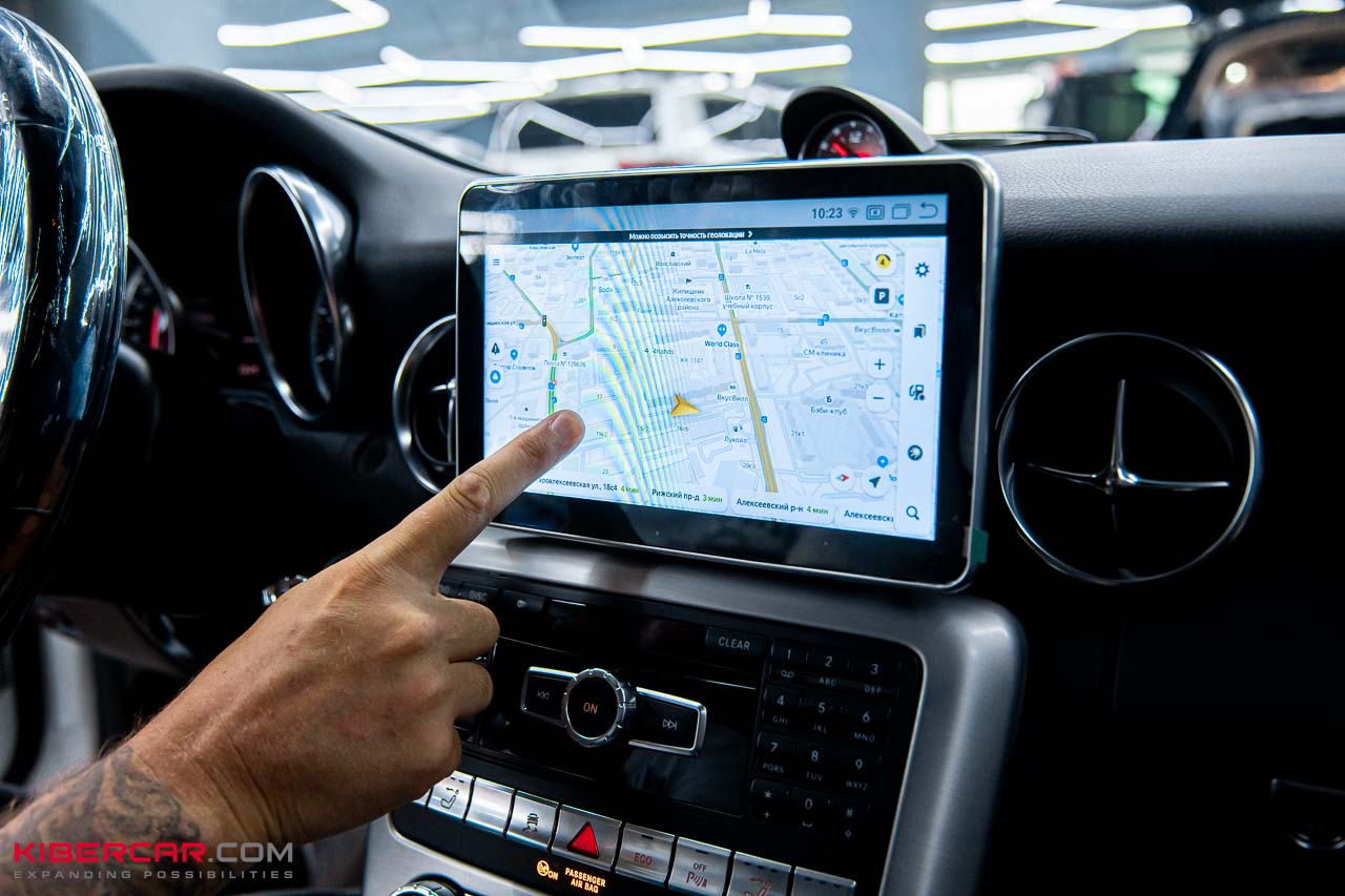 На днях в наш установочный центр обратился владелец Mercedes-Benz SLK 2014 года выпуска. Он решил заменить ГУ – штатное было устаревшим, и, по сути, бесполезным.