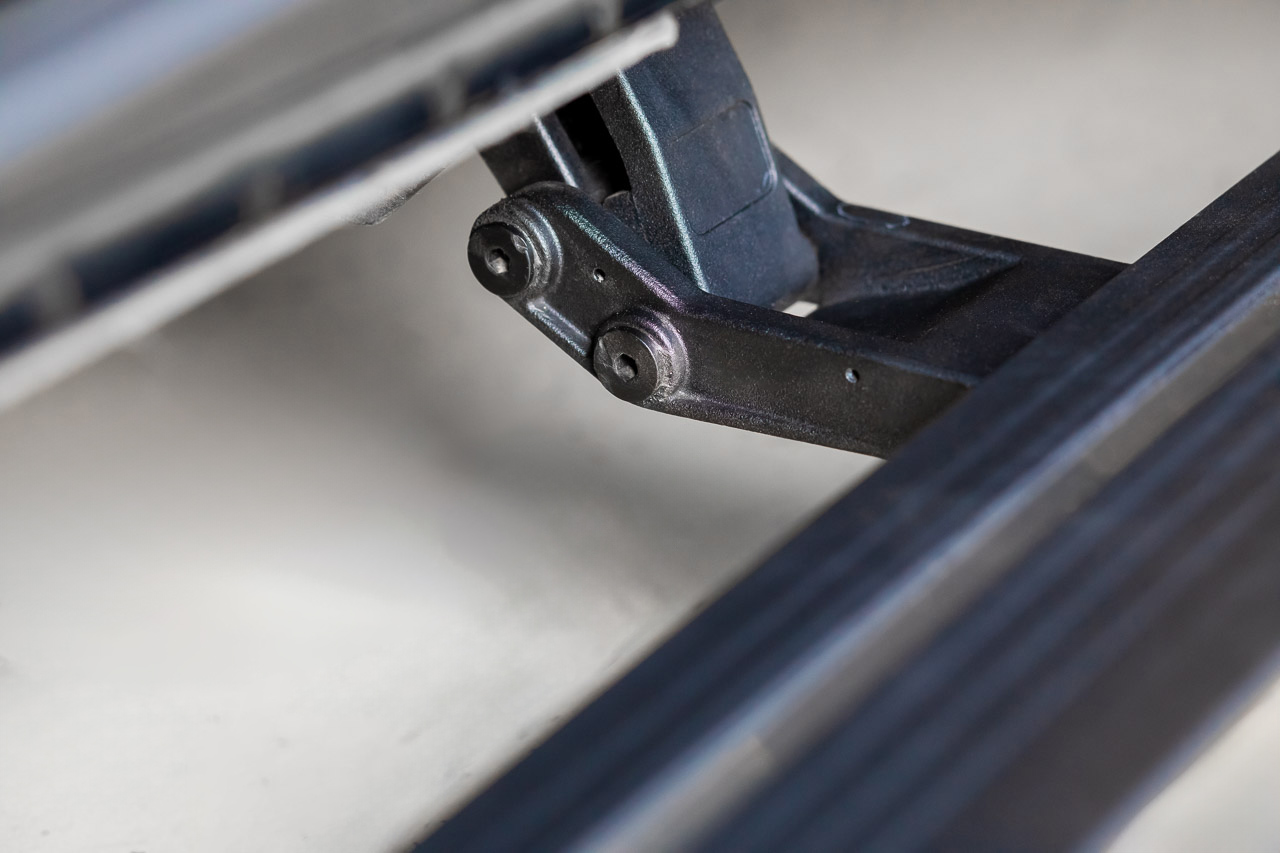 Работу выдвижных порогов обеспечивает корейский двигатель – надежный и долговечный. Все компоненты рассчитаны на эксплуатацию в широком диапазоне температур, не боятся мороза и влаги, жары и грязи. Установка была выполнена в штатные отверстия. В результате пороги выглядят как часть заводской комплектации автомобиля – не привлекают лишнего внимания, не бросаются в глаза. Срабатывают они автоматически: достаточно открыть любую дверь, и под ней плавно появится планка.