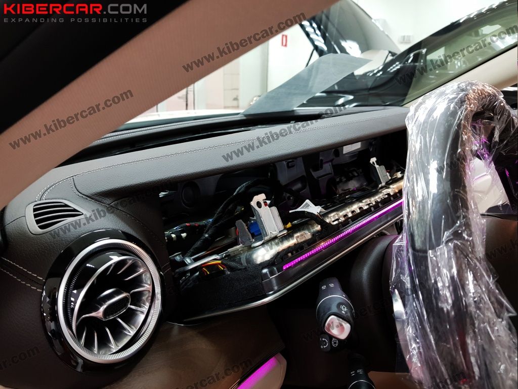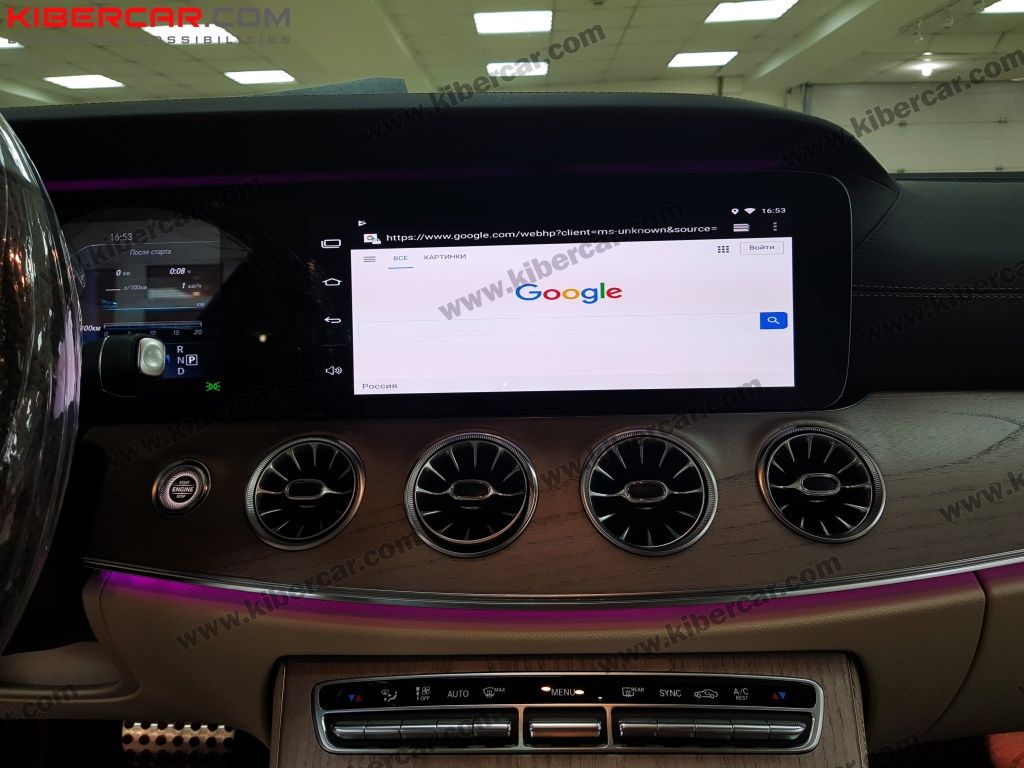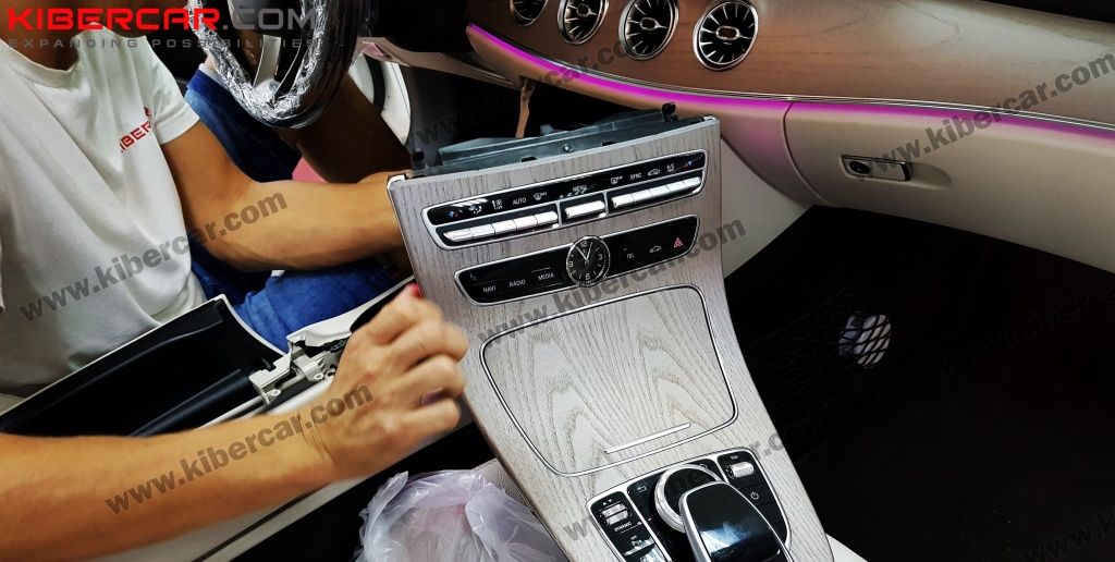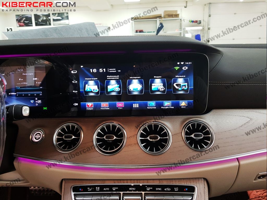 Новый Mercedes E200 2018 года выпуска, только представьте этот автомобиль. Одно из основных отличий нового модельного ряда – это единый штатный дисплей. Ранее, Mercedes выпускали штатную бортовую панель, которая включает в себя 2 дисплея. Один на показатели спидометров, другой на мультимедиа и др. Теперь дисплей один и мы подготовились к дооснащению и таких автомобилей. Наши разработчики специально сделали сенсорное стекло, которое подходит на всю площадь штатного монитора.