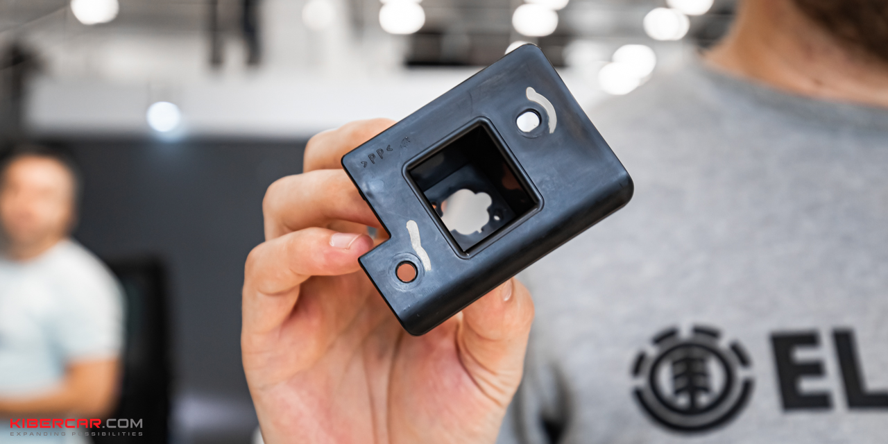 Чтобы поставить омыватель, наши мастера демонтировали штатный подиум камеры и заменили его на новый, изготовленный по нашим чертежам. Он абсолютно идентичен по посадочным местам штатной детали, но в его конструкции предусмотрено место для форсунки омывателя. Подиум изготавливается на 3D-принтере из прочного, износостойкого пластика, срок службы которого не меньше, чем у оригинальной детали. Факт установки доработанного подиума снаружи совершенно незаметен, новый элемент не портит вид автомобиля.