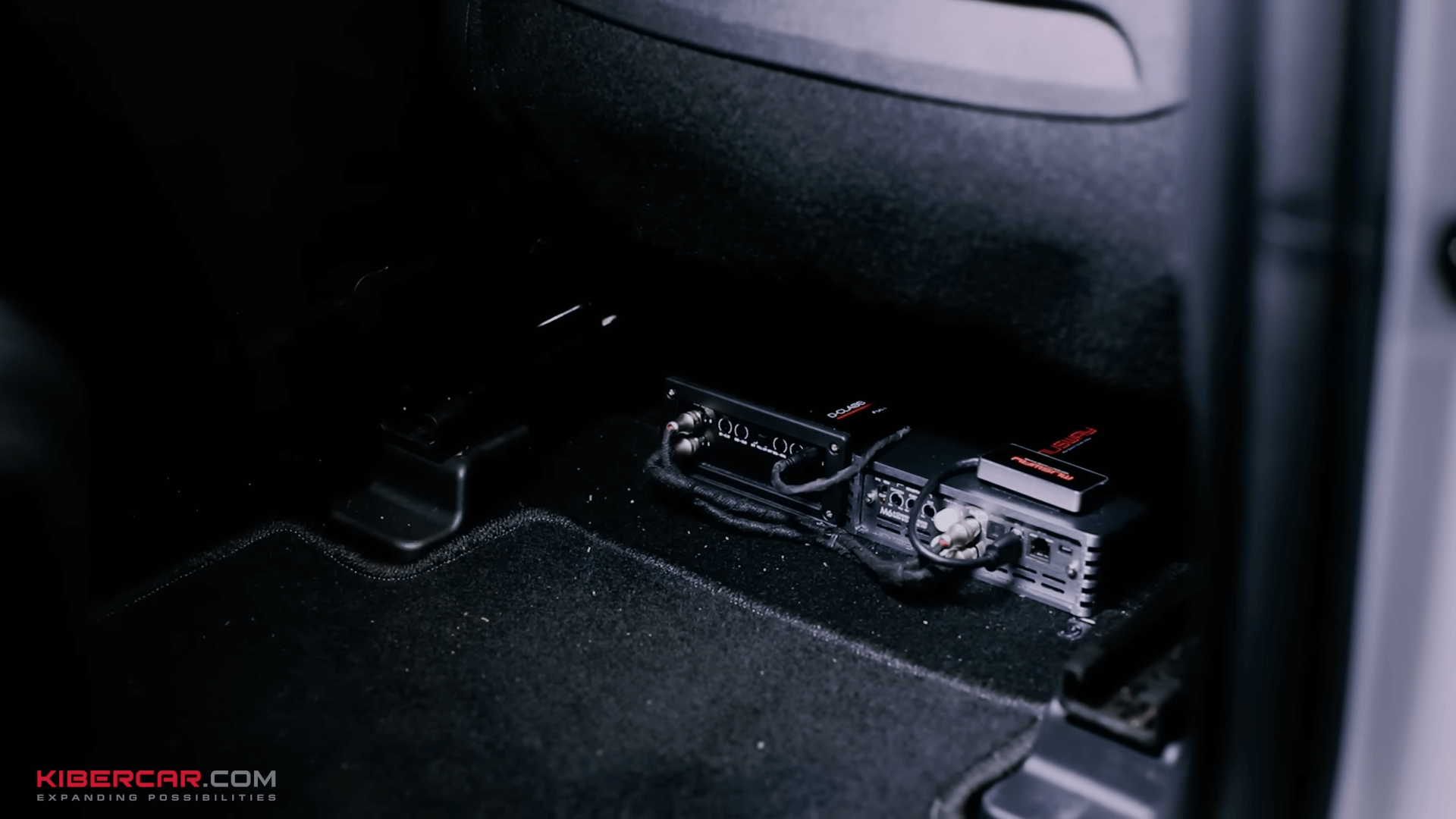 Процессорный усилитель. Обычно располагается под задним креслом. Провода аккуратно уводятся под ковер и не мешают водителю и пассажирам