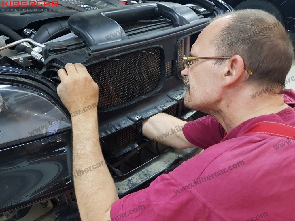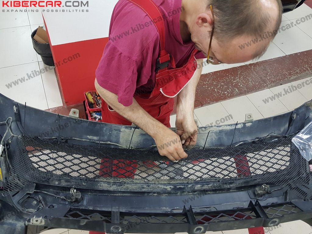 Клиент попросил установить 2 слоя сетки. После скрепления ее с бампером, мастер установил ее и за решетку бампера. Все! Теперь точно ни одна букашка или камень не смогут путешествовать вместе с Вами.