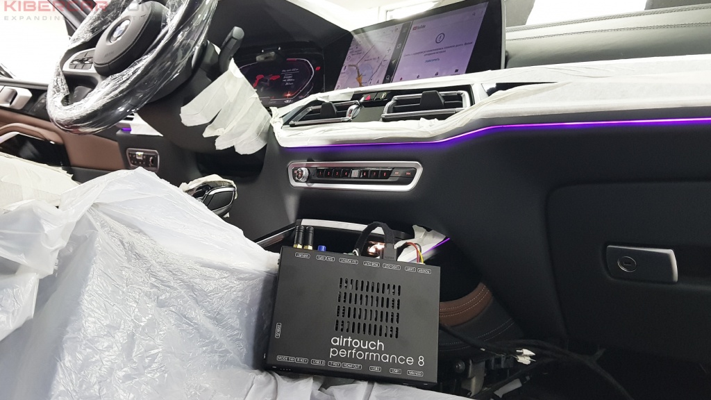 AirTouch Performance 8 в данном случае работает в паре с транскодером, который помогает преобразовывать изображение для штатного монитора BMW и дополнительную внешнюю периферию, как, например, сенсорный экран или дополнительные кнопки управления. К слову, в данной инсталляции нет ничего «лишнего» вроде врезанных в салон кнопок. Транскодер позволяет коммутировать штатные кнопки.