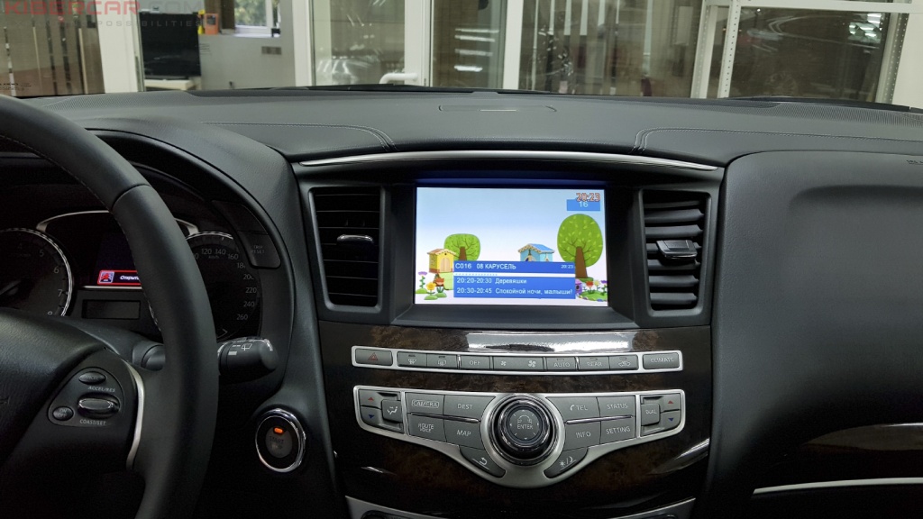 Infiniti QX60 – это огромный с пассажирской точки зрения кроссовер AAA-класса, который радует своих счастливых обладателей вот уже 7 лет. Рестайлинг единственного поколения данного красавца посетил наш установочный центр, дабы в уже переполненный комфортом салон добавить еще одну отличительную черту в виде полноценного телевидения, которое можно использовать во время быстрого движения.
