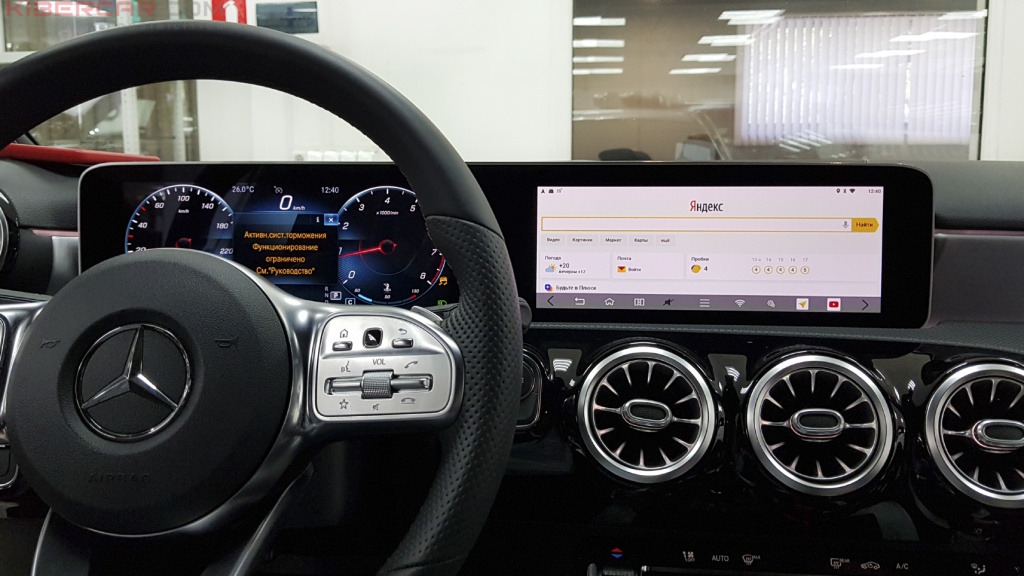 Правая сторона огромного экрана обзавелась системой на базе Android. AirTouch Performance 8 – уместное дополнение стильному интерфейсу Mercedes-Benz.