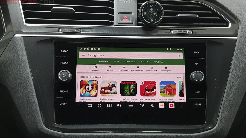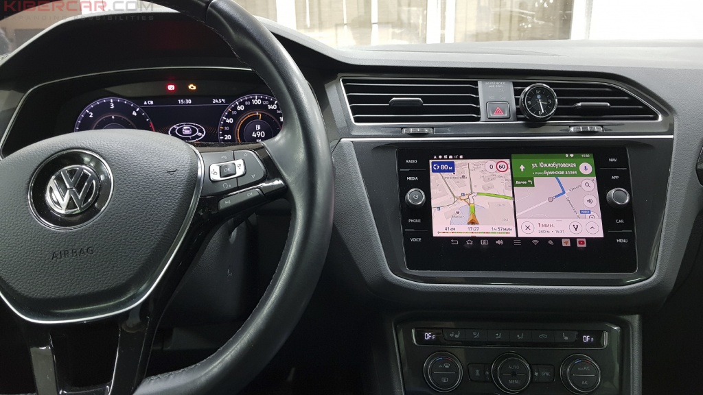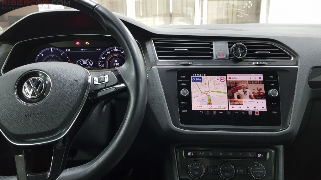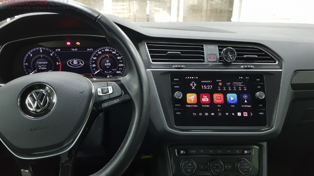 Данный Тигуан был оборудован железом последнего поколения у нас в компании, которое способно не только задать жару многим из современных решений на Android. Последние, к слову, не всегда имеют гарантию производителей; подключение штатным методом (Pin-To-Pin) и стабильную работу. Мы же в свою очередь уже давно зарекомендовали себя среди клиентов и дилеров как поставщик добротного решения. Иначе бы не стали его патентовать.