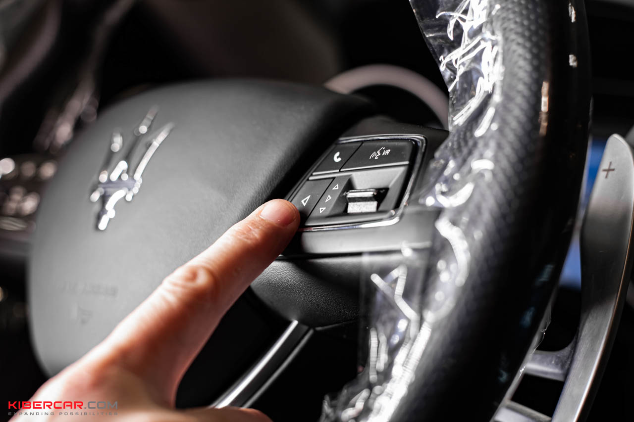 Звук выходит в штатную аудиосистему Maserati, поэтому регулировать громкость можно привычными способами, как на руле, так и на панели автомобиля.