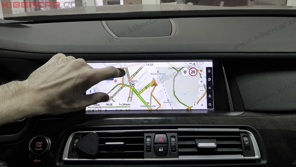 Началось все с замены штатного экрана BMW. В комплекте с устройством есть целый отдельный монитор, который обладает емкостным тачскрином. По замыслу, у водителя должен появиться еще один вариант взаимодействия с магнитолой, помимо управления джойстиком. Все же мы любим вариативность в наших делах. Здесь примерно также, с оговоркой на то, что сам монитор прибавил в дюймах.