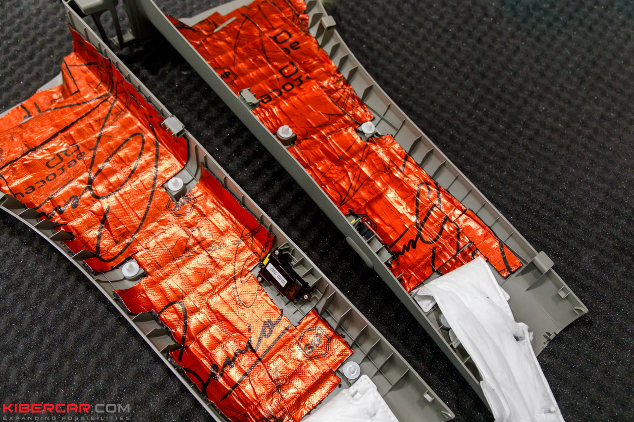 Шумоизоляция по технологии AEROCELL предполагает использование QP GENIO и QP INTRIGO – специальных материалов, которые легче и эффективнее традиционных. Общий вес окажется в 1,5 раза меньше, чем если используется классическая технология установки шумки.