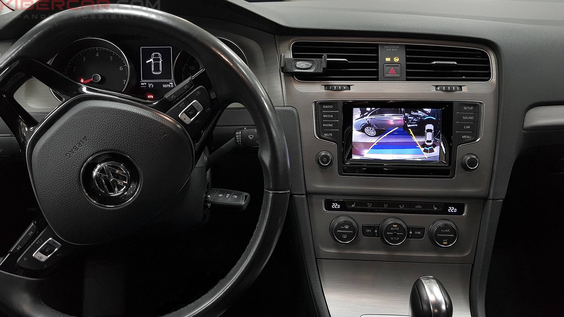 Клиент, помимо эстетического функционала эмблемы Volkswagen пожелал увидеть еще и практический. Поэтому решил, что автоматическая камера заднего вида на его VW Golf была бы очень уместна.