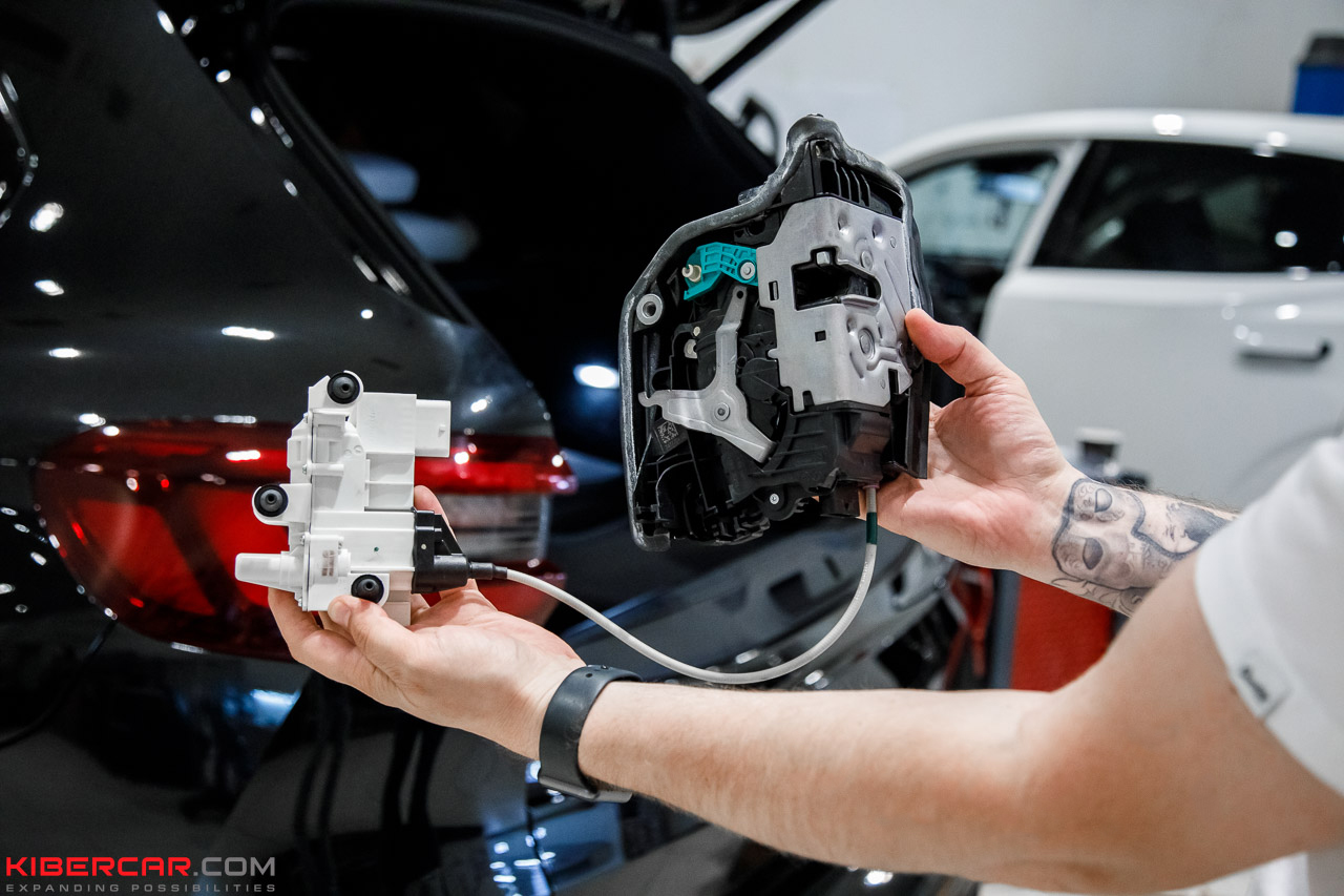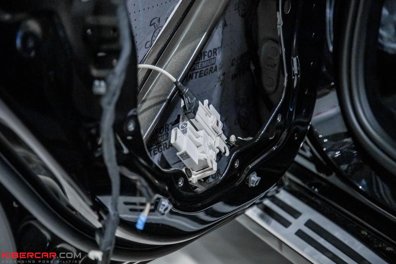 Мастера установили доводчики на все четыре двери автомобиля. В процессе дооснащения снимается обшивка с двери, демонтируется штатный замок. После этого на его место ставится новый, уже оснащенный электромотором и тросовой системой, обеспечивающей стабильную работу системы доводчика.