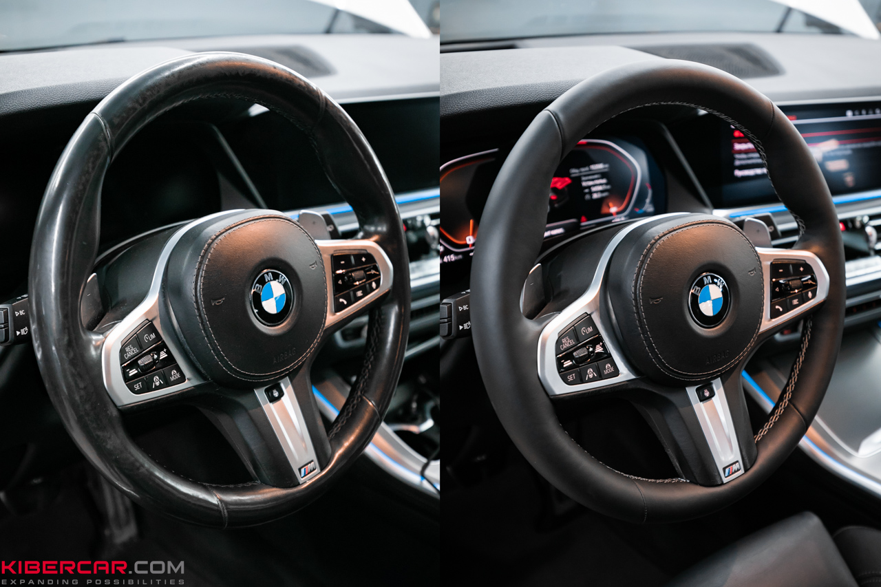 Недавно в наш детейлинг-центр поступил BMW X5 с серьезными проблемами в рулевом колесе. Старая отделка была изношена до такой степени, что косметический ремонт уже не мог помочь. Было принято решение провести полную перетяжку руля, чтобы восстановить его первоначальную красоту и комфорт.
