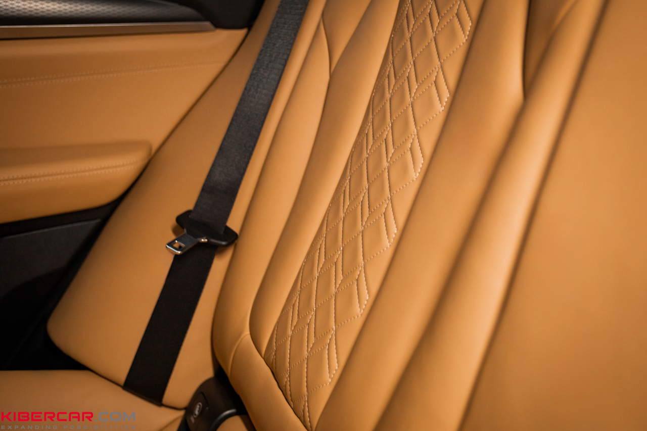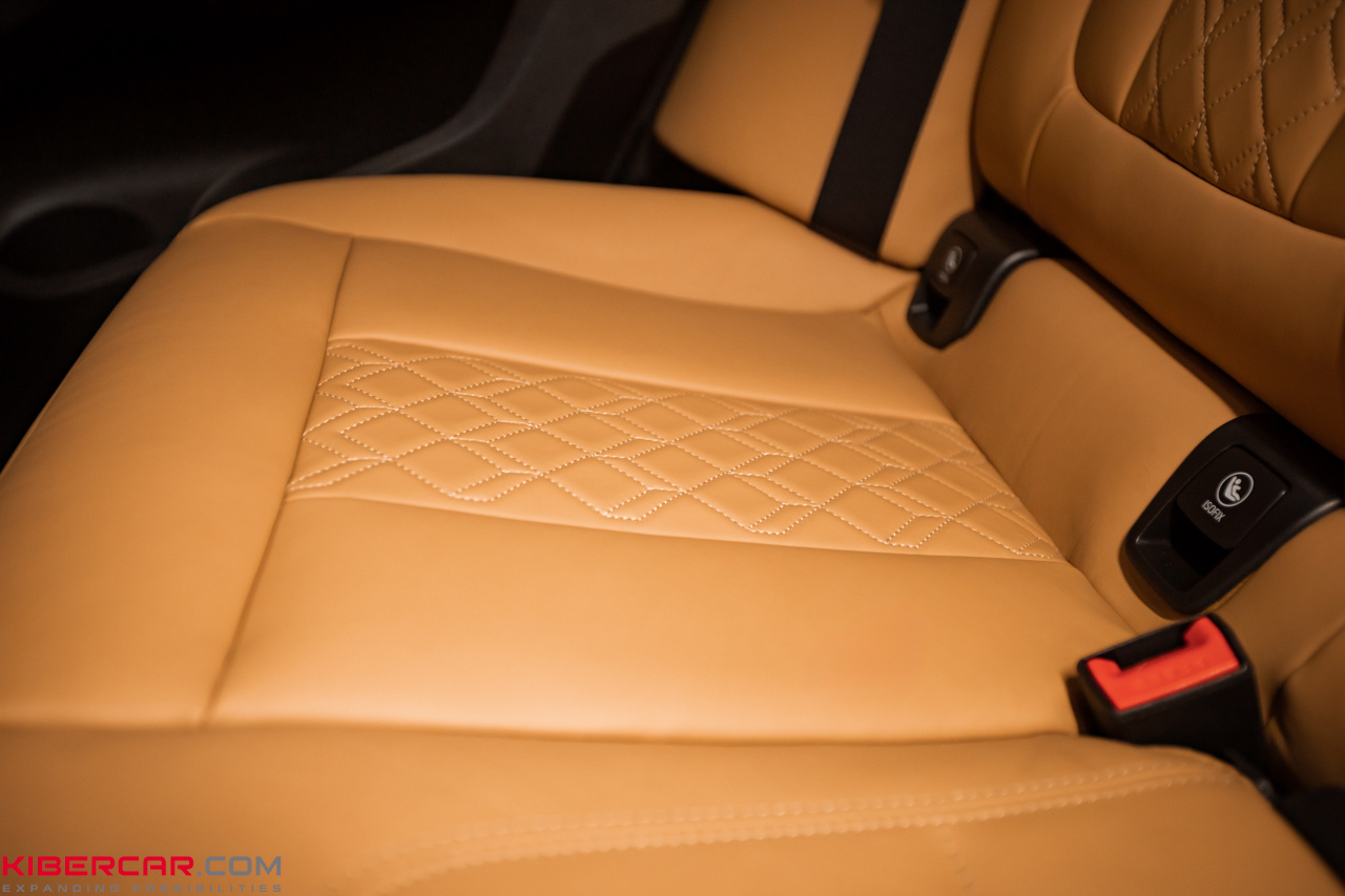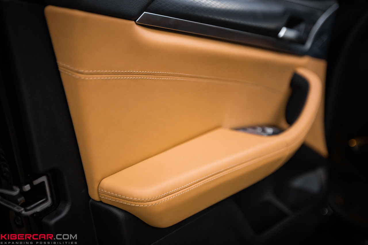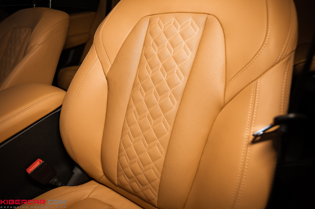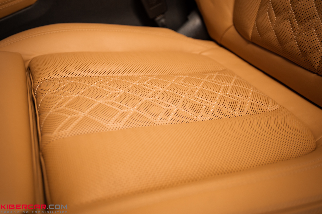 Решение: перетяжка салона в наппу и алькантару рыже-бежевого оттенка под Bentley, перфорация на сидениях.