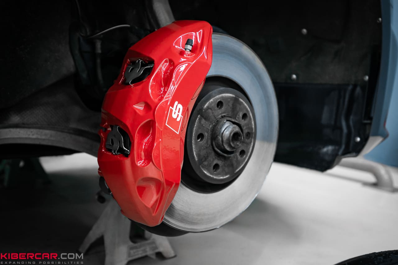 Наш клиент выбрал ярко-красный цвет для суппортов, а также дополнительное нанесение логотипа в стилистике тюнинг-пакета S-line. Мы предлагаем вариант покраски как с логотипом, так и без. Краска может быть любого цвета, дизайн ограничивается только вашей фантазией.