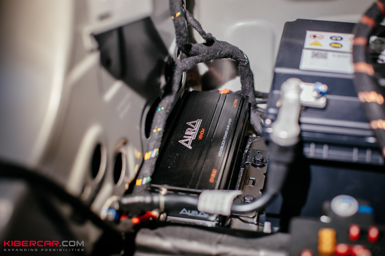 Изначальная акустика не предполагала поканального подключения. Наша команда исправила этот недостаток, проведя дополнительную проводку к процессорному усилителю от каждого динамика. Также был настроен звук сабвуфера, чтобы звучание уходило вперед.