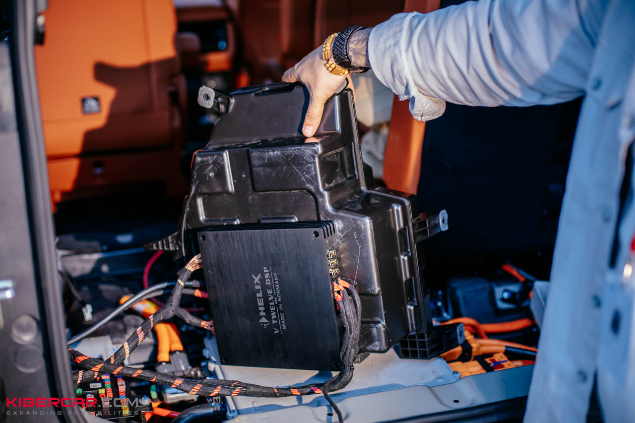 Далее, наши мастера установили процессорный усилитель Helix V Twelve DSP, который позволил настроить звучание фронтальной акустики поканально, дать в два раза больше мощности и добиться чистоты и четкости акустической сцены. Эта модель процессорного усилителя достаточно компактная, чтобы можно было размещать скрытно в любом удобном месте автомобиля. В Polar Stone 01 он был установлен за корпусом штатного сабвуфера.