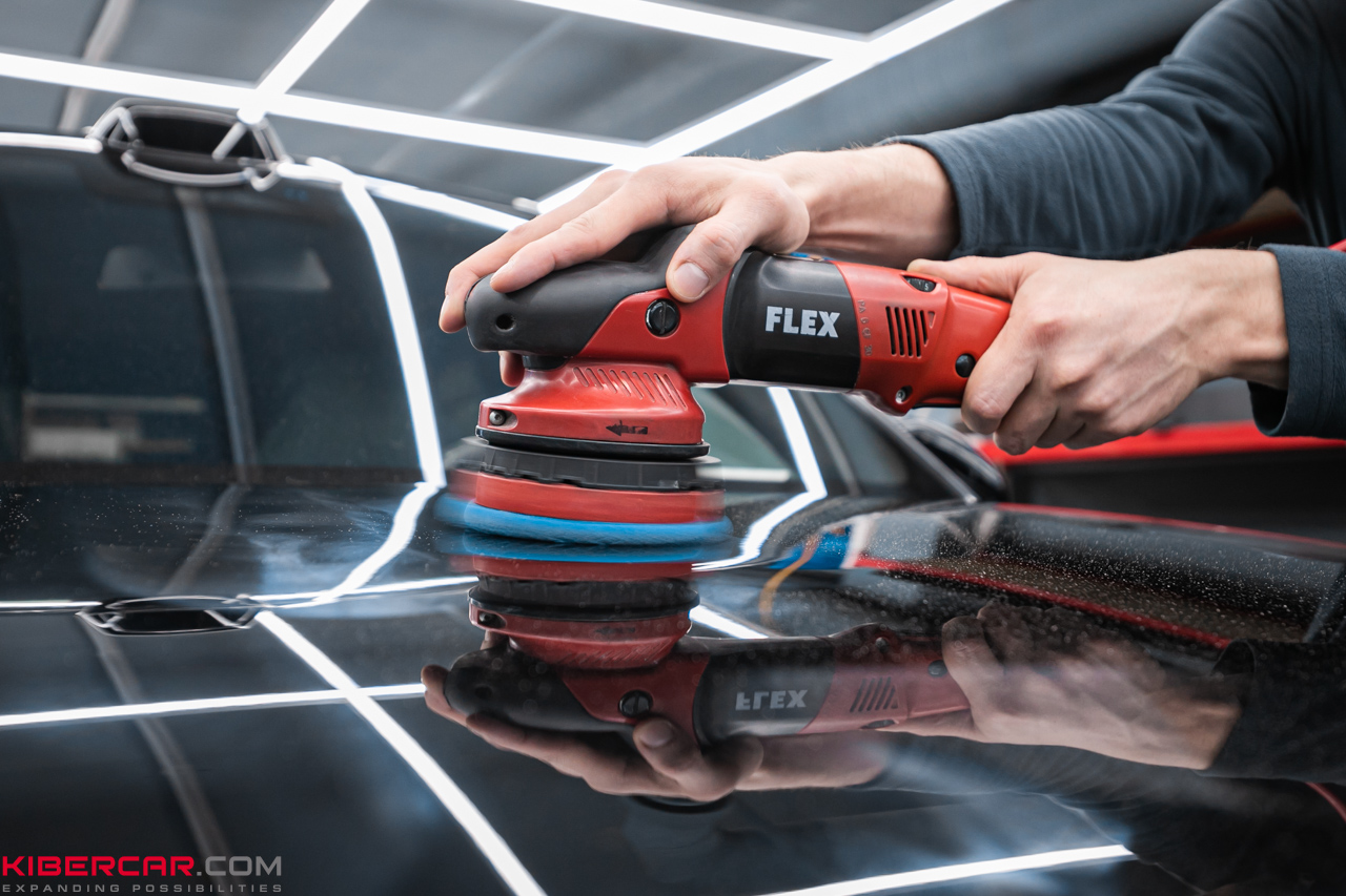 Грубая полировка. Для удаления глубоких царапин и дефектов использовались более абразивные пасты и жёсткие полировальные круги. Это позволило восстановить гладкость поверхности капота.