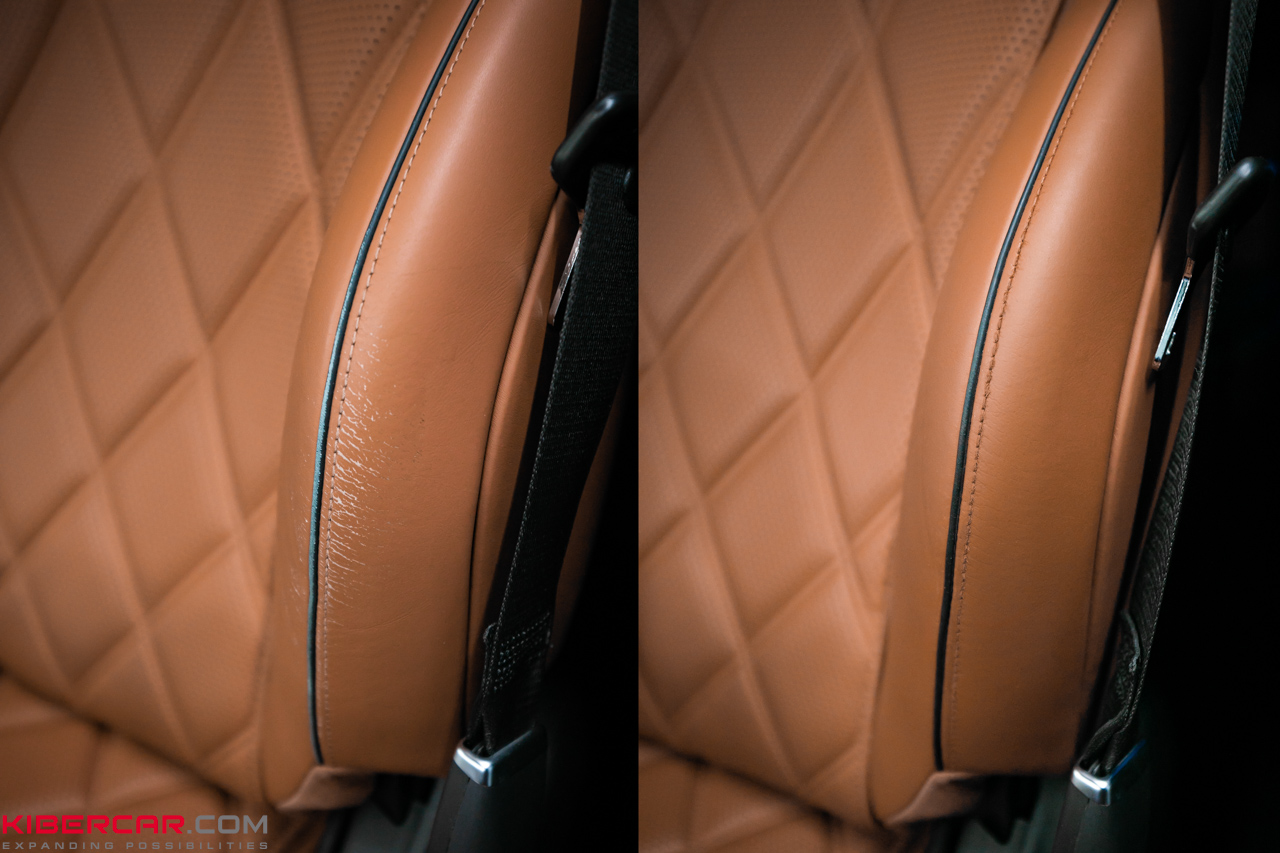 Финальным и не менее важным этапом стала реставрация водительского кресла. Несмотря на общее отличное состояние салона, на сиденье были заметны потёртости — вполне типичная ситуация даже для бережно эксплуатируемых автомобилей.