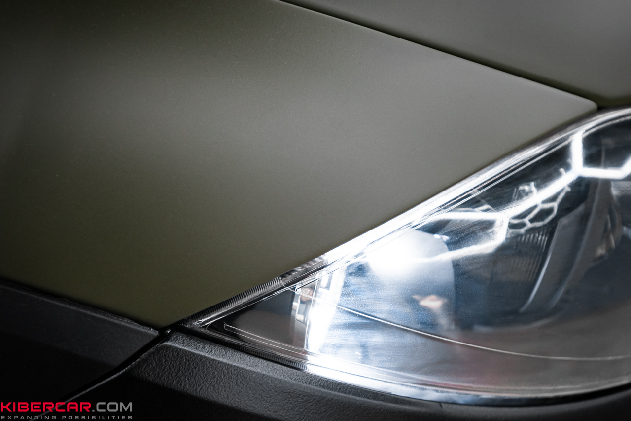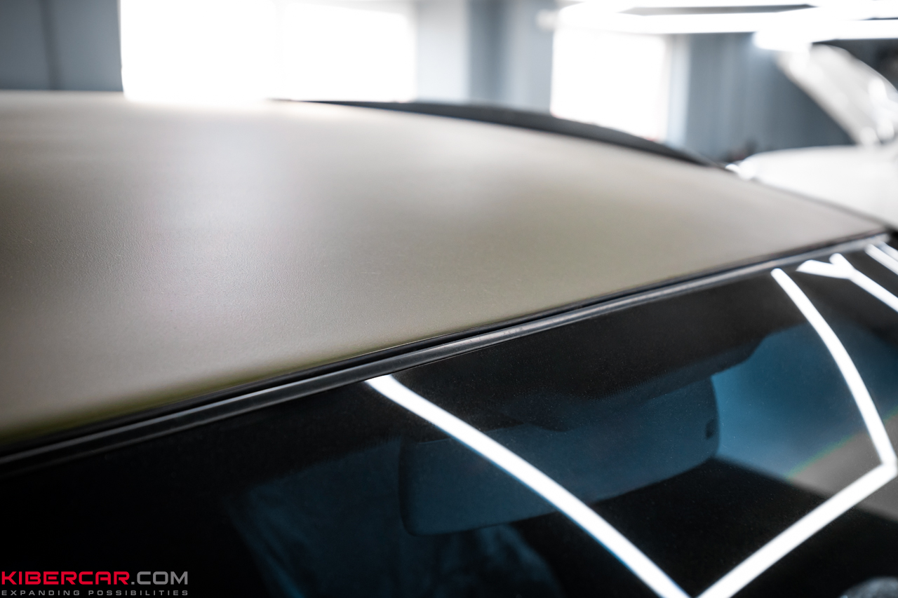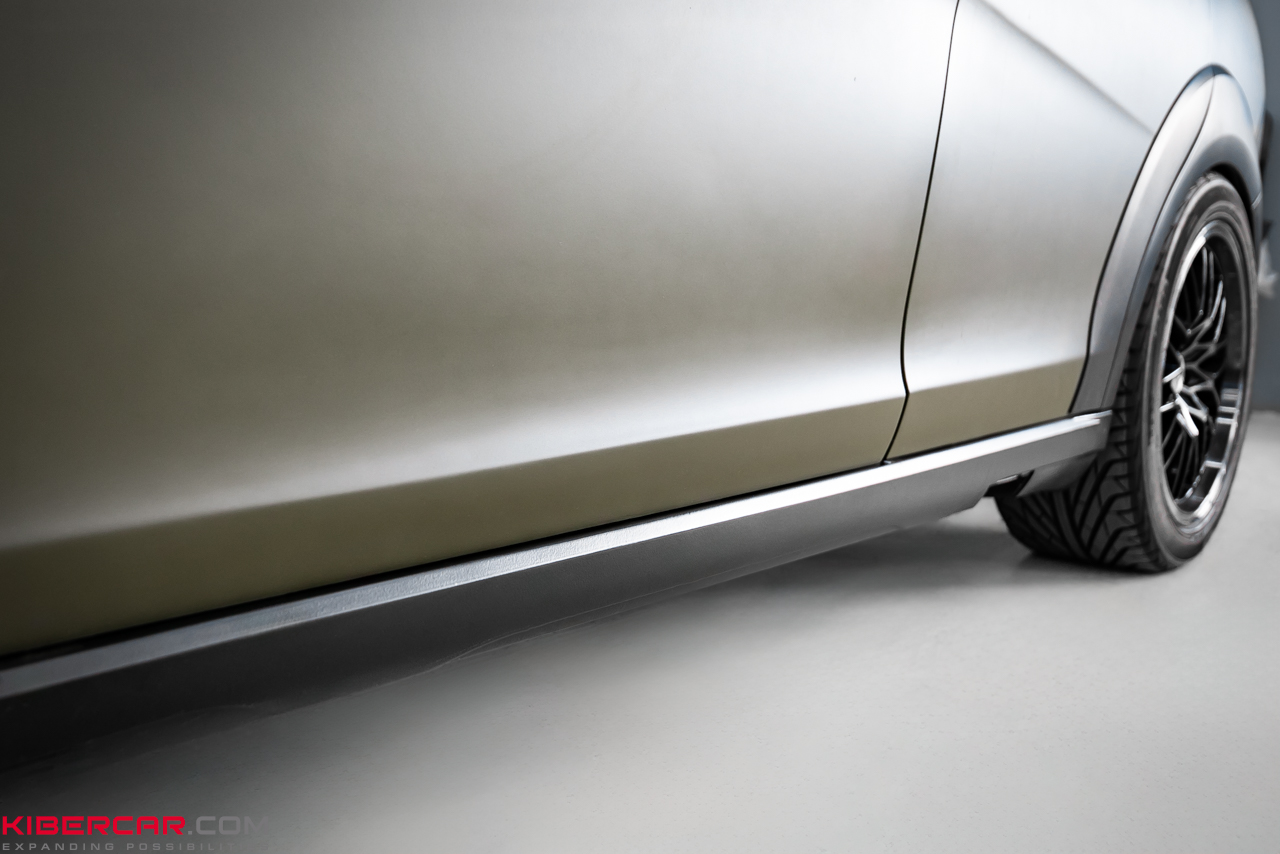 Чтобы создать контраст и дополнить облик автомобиля, бампера, пороги, расширители колесных арок и другие мелкие элементы были окрашены в темно-графитовый цвет, также с матовым эффектом. Это позволило гармонично выделить детали экстерьера, не нарушая общей концепции дизайна.