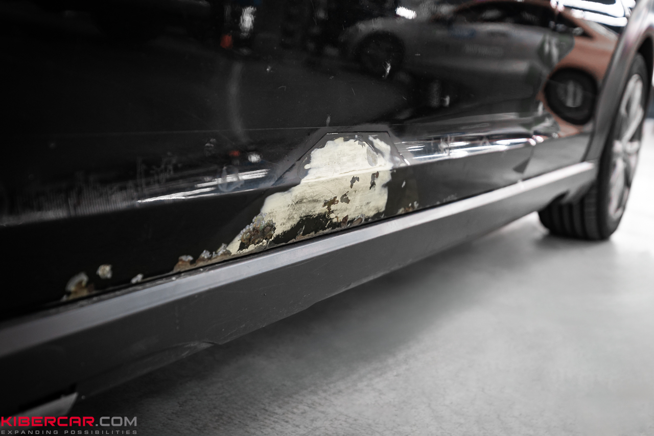 Первым этапом мы занялись выравниванием поверхности кузова. Для этого специалисты нашего детейлинг-центра провели тщательную работу по удалению вмятин и устранению дефектов ЛКП. Мы уделили особое внимание коррозийным участкам, так как важно было не просто устранить визуальные дефекты, но и предотвратить дальнейшее разрушение металла. Все поврежденные и ржавые элементы были зачищены и подготовлены к покраске.