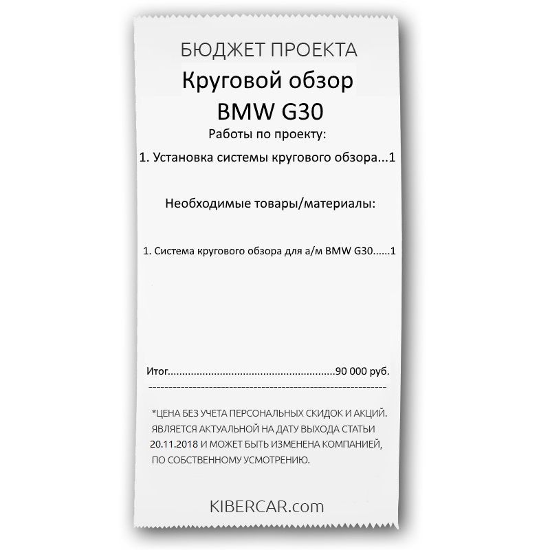 По итогу водитель данного BMW G30 будет иметь на борту одну из самых интересных опций в сегменте парковочных систем. Система кругового обзора у Киберкар даст возможность полноценного контроля пространства вокруг автомобиля. Более того, камеры обладают широким диапазоном видения. Таким образом исчезает вероятность появления слепых зон.