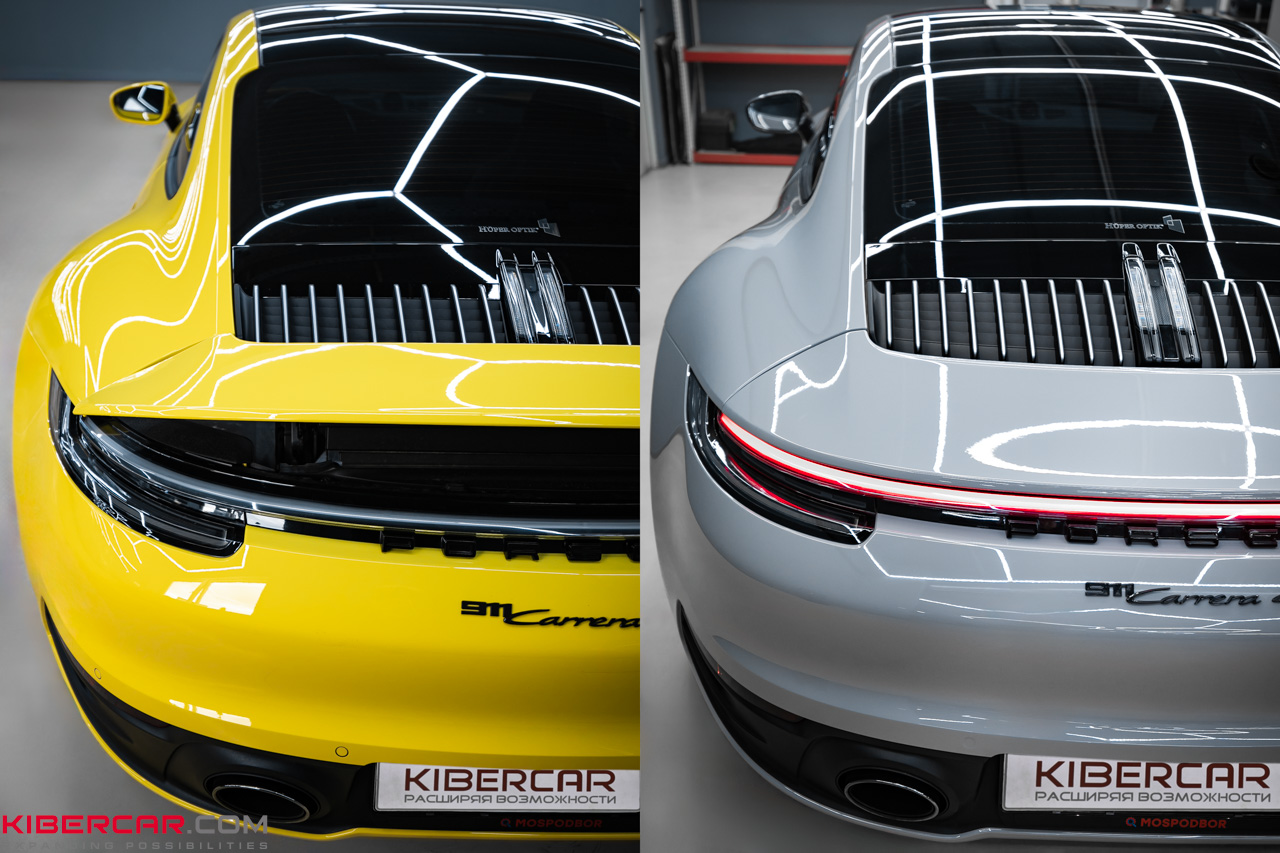 Недавно в наш детейлинг-центр приехал ярко-желтый Porsche 911 2022 года выпуска. Машина выглядит примечательно, но владельцу захотелось поэкспериментировать, и сделать ее более сдержанной. Так что он обратился в наш центр для оклейки кузова пленкой серого цвета, под цвет салона.