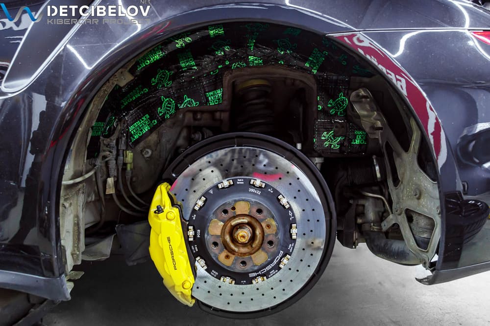 В работе мастера используют технологическую карту, учитывающую конструктивные особенности авто. Шум в салоне Porsche 911 имеет несколько составляющих: это звуки города, шум от проезжающих рядом автомобилей, гул и вибрации от работы двигателя. Чтобы решить задачу, нужно ограничить проникновение звуковых волн внутрь, а также их распространение по салону. Для этого мы обработали двери, пол, внутренние арки, багажник и колесные арки.