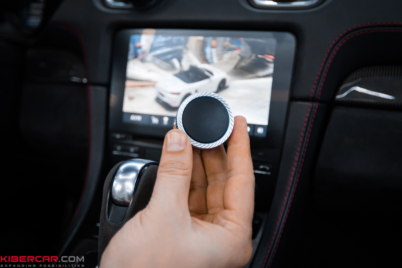 Мы установили 4 камеры: спереди, сзади и две боковых. Точки размещения выбрали таким образом, чтобы картинка была информативной и максимально полной. Переднюю камеру разместили под номером, боковые – врезали в зеркала, заднюю – установили вместо штатной камеры, над номером. Все оборудование органично вписалось в штатный дизайн Porsche Boxster.