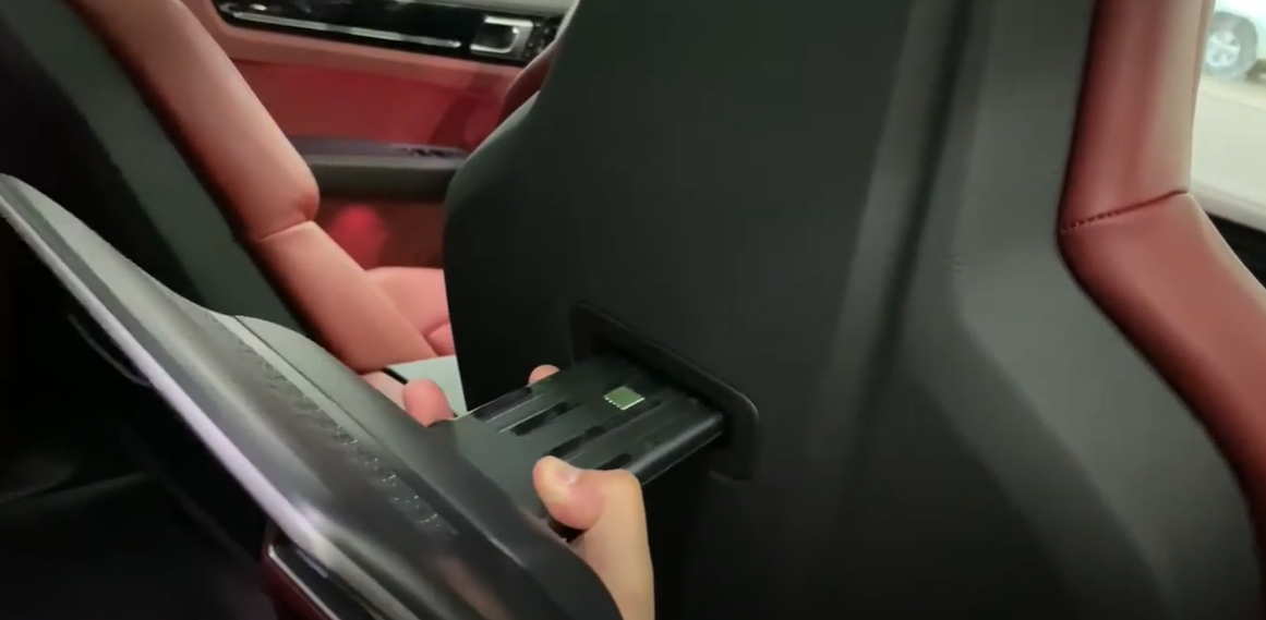 Для удобства пассажиров заднего ряда мастера установили на спинки передних сидений два съемных монитора с магнитными креплениями. Новые экраны диагональю 11.6`` прекрасно вписались в интерьер автомобиля, органично расширили и дополнили его. Они подключаются к интернету через USB-модем, роутер или смартфон.
