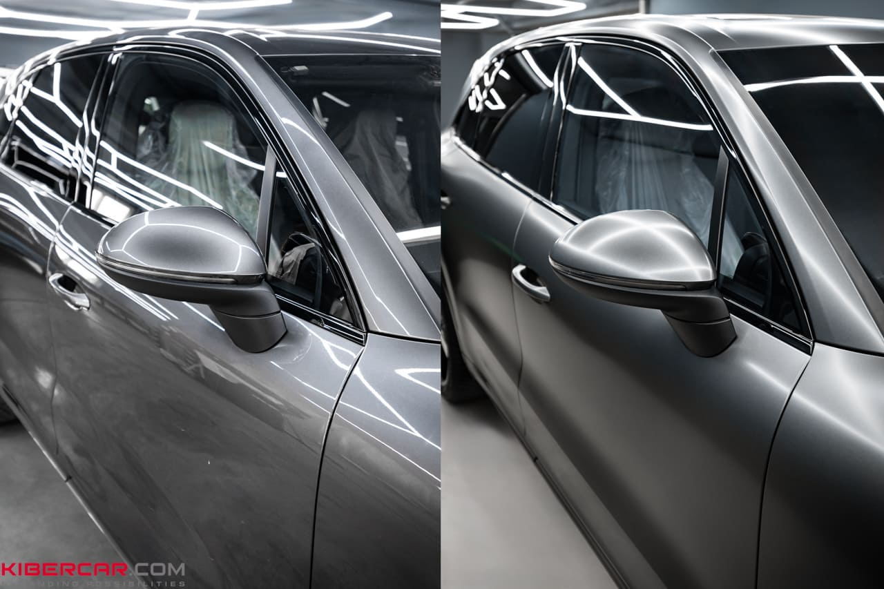 В наш детейлинг-центр обратился владелец Porsche Cayenne для проведения оклейки кузова. Авто — красивого темно-серого цвета, с выразительным дизайном и впечатляющими техническими характеристиками. Тем не менее это заводское решение, универсальное для всех. Мы предложили выполнить оклейку матовой пленкой. Цвет лакокрасочного покрытия сохраняется, но фактура становится другой, из-за чего меняется и общее впечатление от автомобиля.