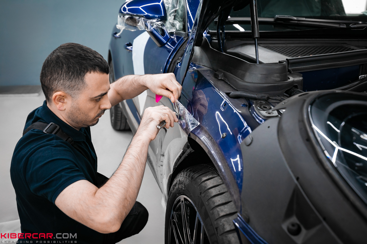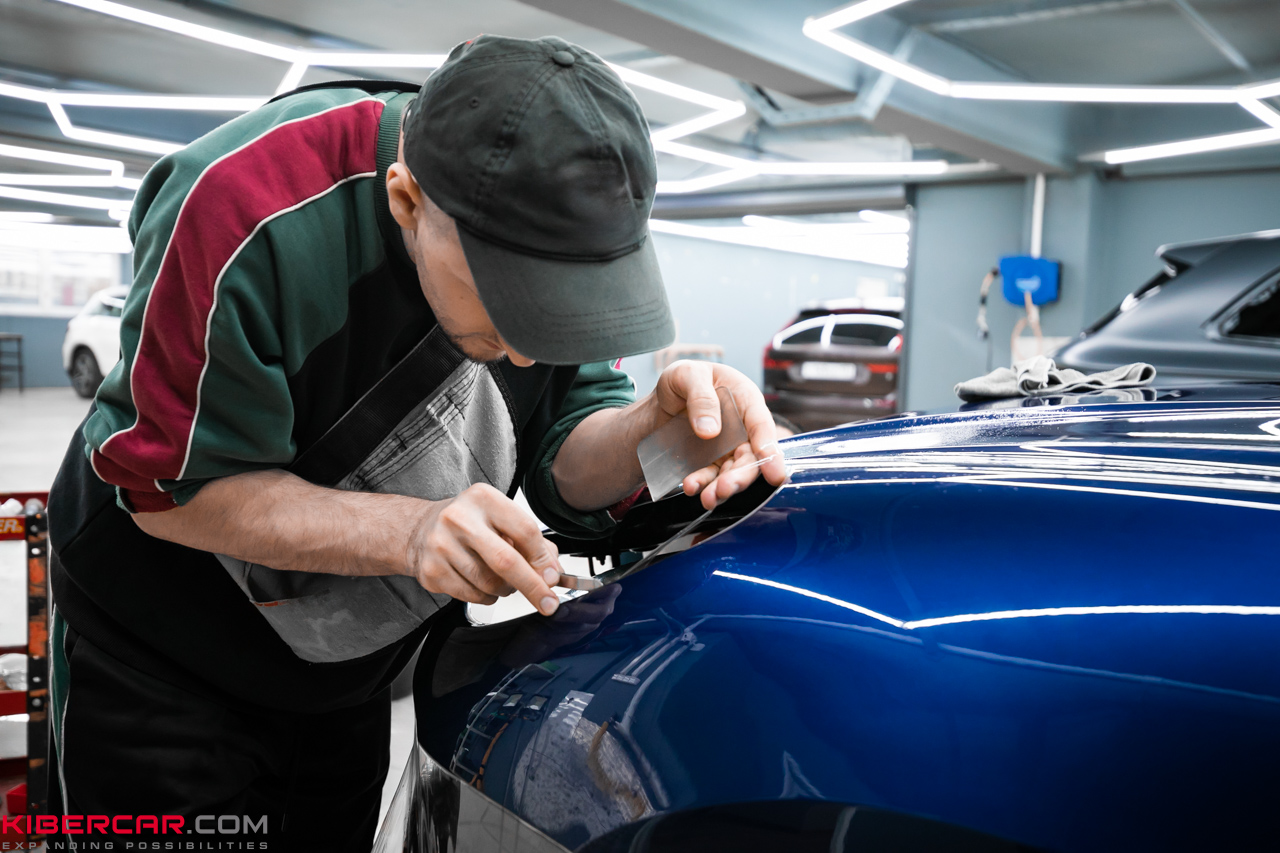 Граница между оклеенной и неоклеенной частью кузова не видна. Ее можно заметить только при определенном освещении, да и то – если внимательно осматривать машину. Профессиональная оклейка гарантирует, что покрытие не будет отклеиваться на углах и стыках.