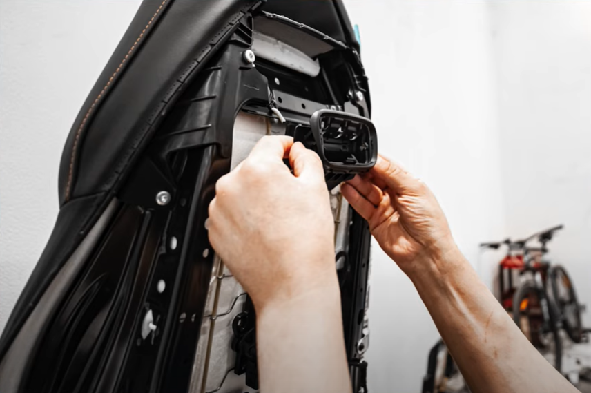 Для установки монитора мастера использовали оригинальную систему от концерна «Мерседес». Мы разобрали сиденье, сделали необходимое отверстие и подвели к нему питание, после чего собрали сиденье. Когда планшет убран, техническое отверстие автоматически закрывается магнитной шторкой и не портит внешний вид салона.