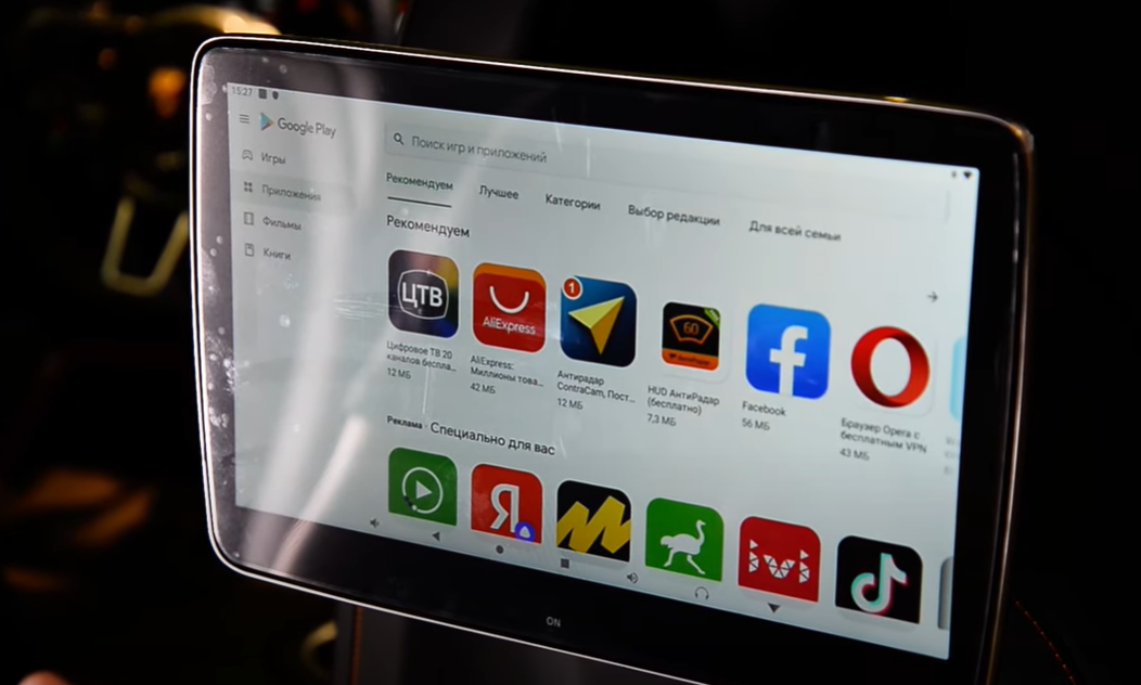 Вместе с монитором в распоряжении пассажиров заднего ряда появились все возможности, которые открывает операционная система Android. Достаточно подключиться к своему аккаунту Google, и можно пользоваться полноценным магазином приложений Play Market — нет ограничений по выбору программ. И навигатор, и игры, и другие онлайн-сервисы устанавливаются так же просто, как на обычном планшете.