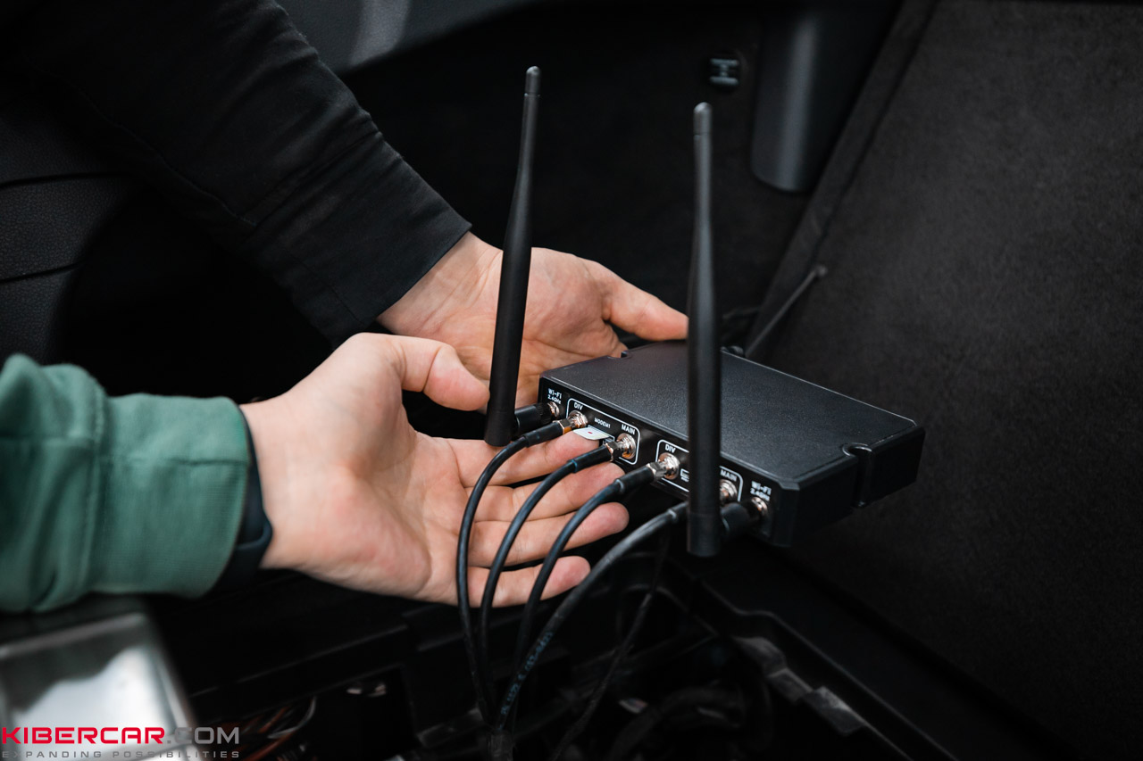 Роутер размещается в багажнике авто. Он может работать с двумя сим-картами, а кроме того, имеет две раздающие антенны и четыре антенны, рассчитанные на прием – они распределены по всему автомобилю. Такого рода монтаж не лишает владельца возможности отправиться к официальному дилеру за гарантийным обслуживанием.