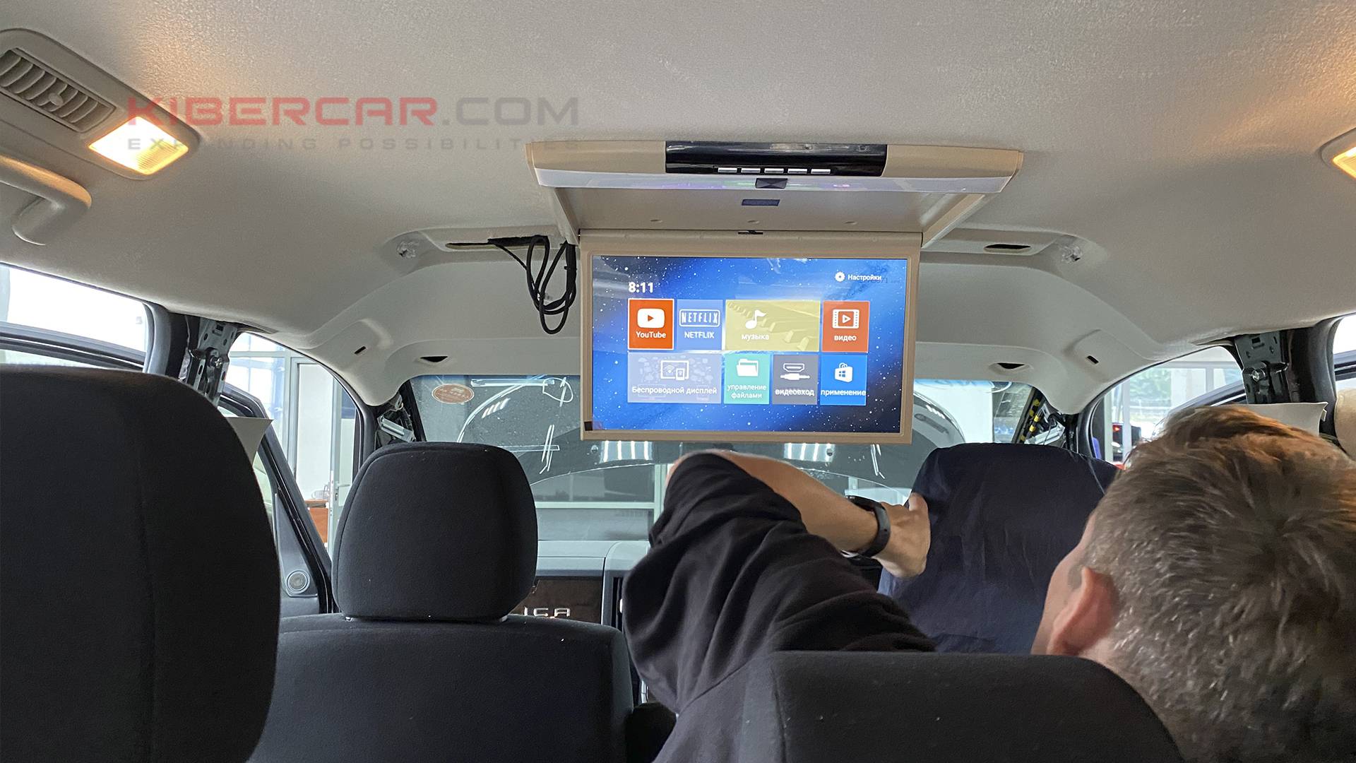 В больших минивэнах находиться крайне скучно, когда речь идет о дальней поездке. Дабы скрасить пребывание пассажиров есть решение по установке потолочного монитора, который может быть мультимедийный центром и воспроизводить фильмы, клипы или видео, а также полноценным компьютером с удобным управлением аэромышью.