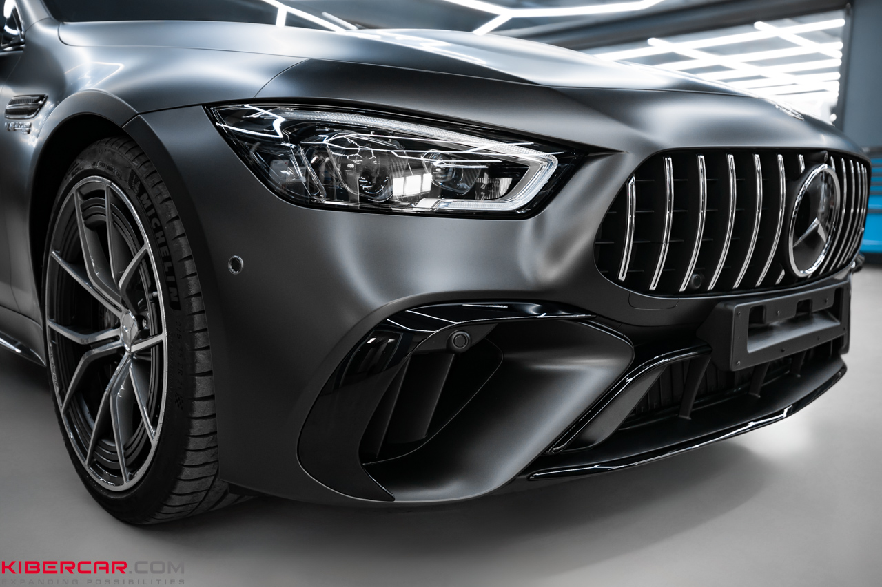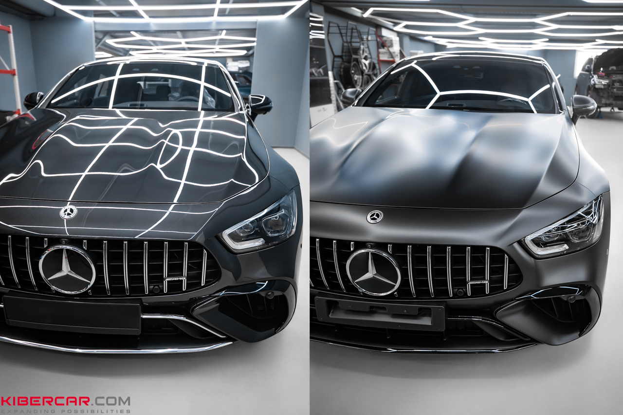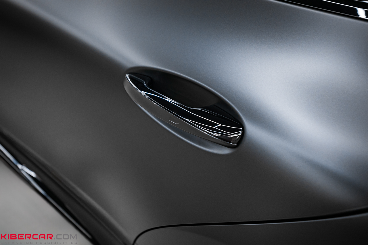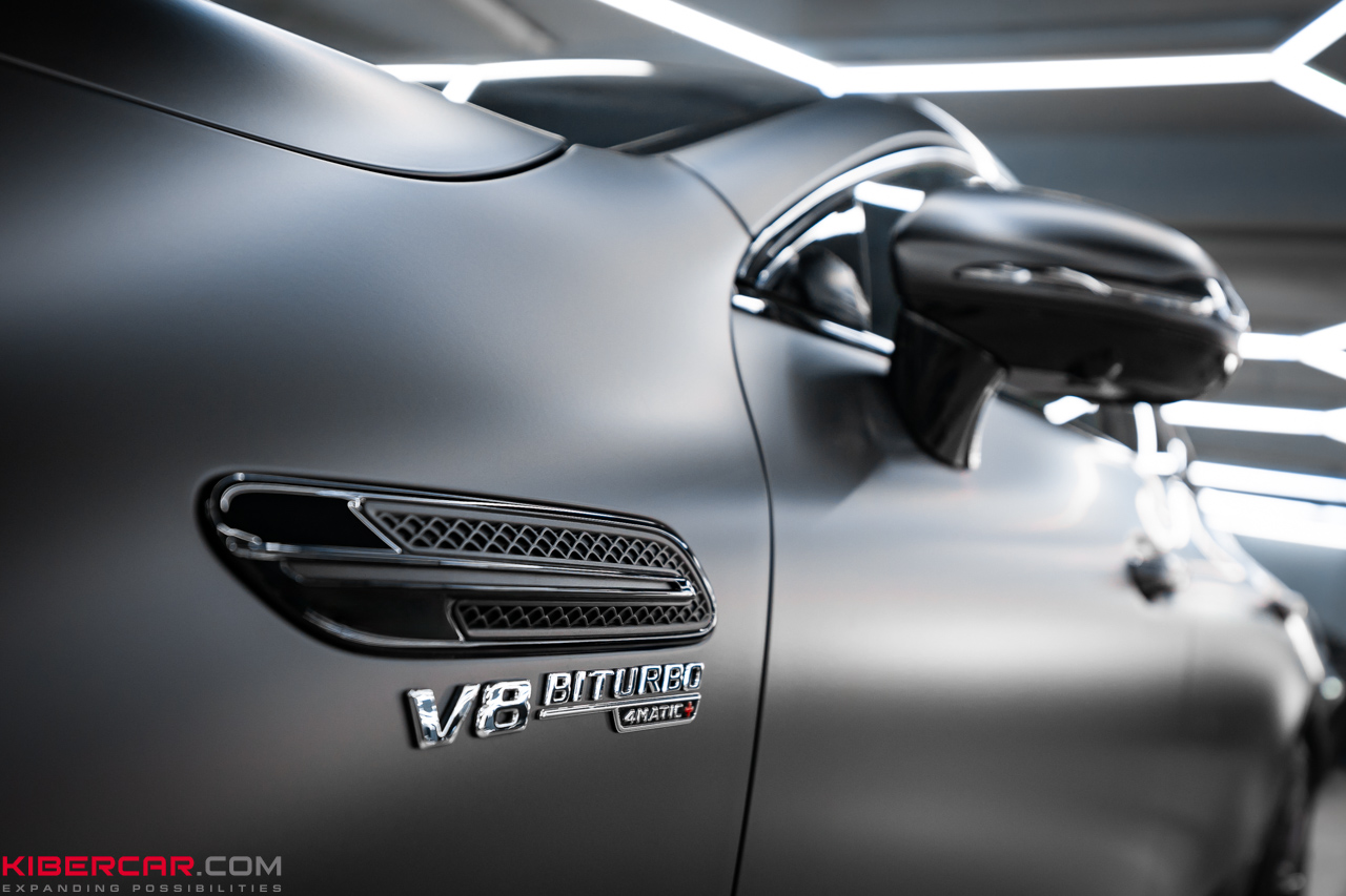 Полиуретановая пленка — это не просто способ изменить внешний облик автомобиля, но и эффективная защита лакокрасочного покрытия от механических повреждений. В отличие от винила, полиуретан обладает самовосстанавливающимися свойствами, устойчив к сколам, царапинам, ультрафиолету и агрессивной химии. А матовая фактура придаёт кузову благородный, сдержанный стиль, идеально подчёркивающий спортивные формы AMG GT.