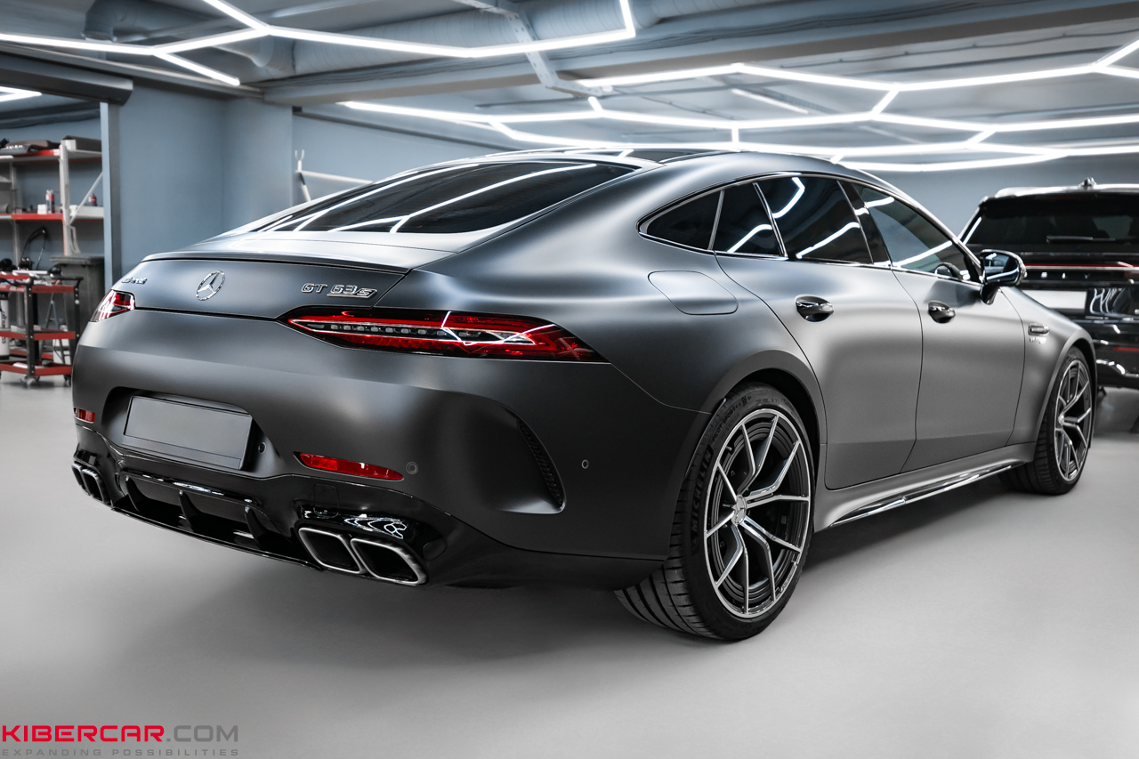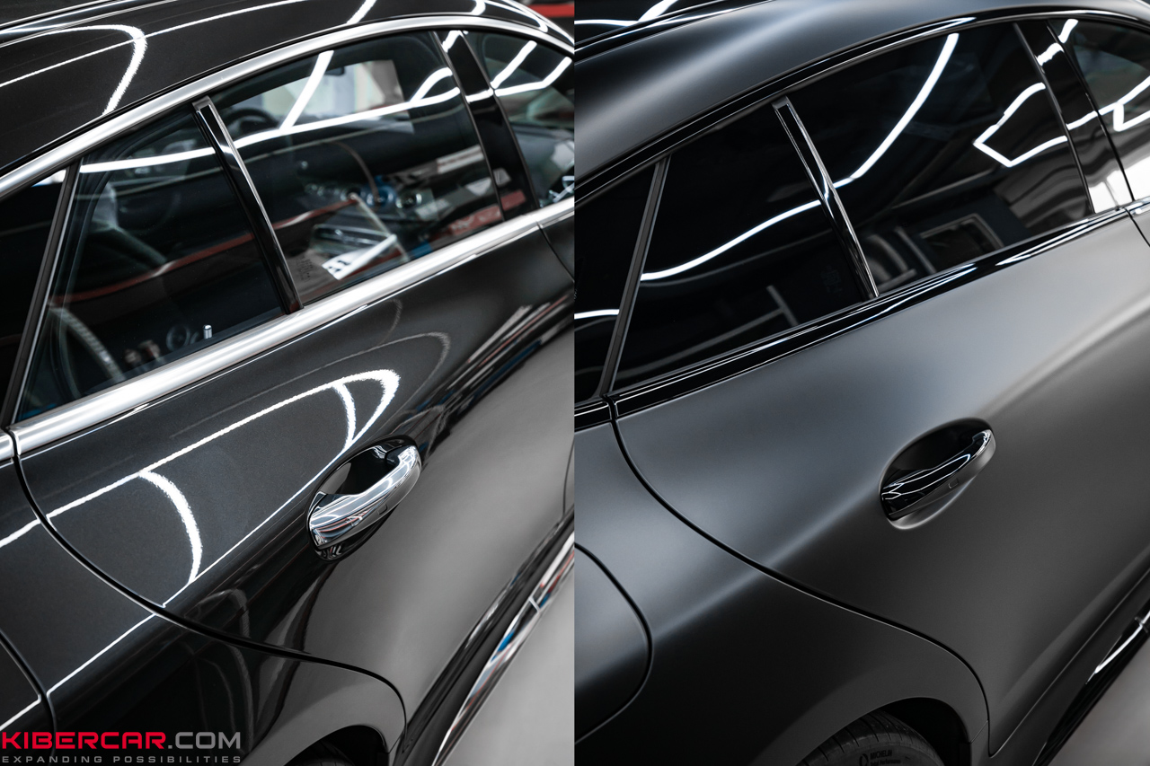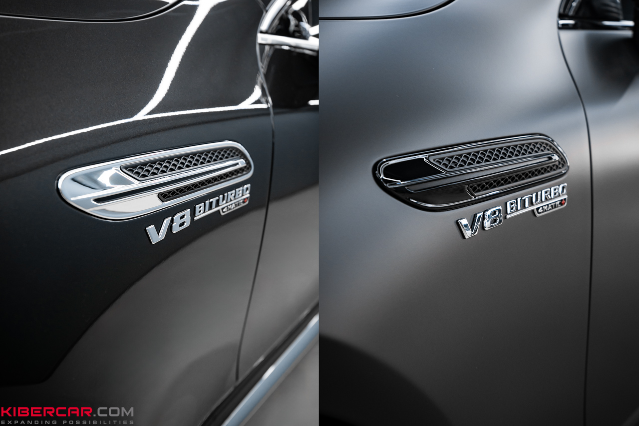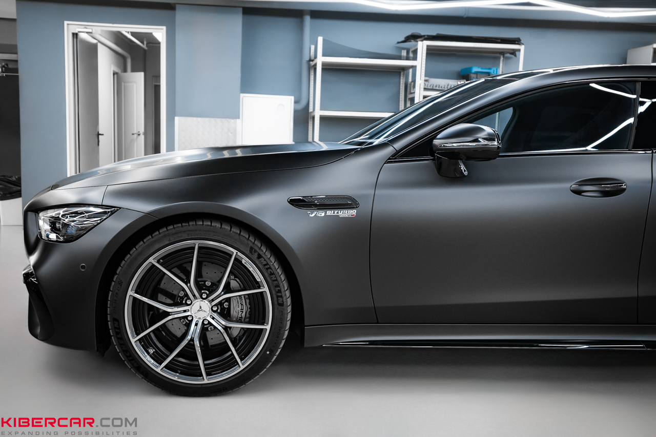 Полиуретановая пленка — это не просто способ изменить внешний облик автомобиля, но и эффективная защита лакокрасочного покрытия от механических повреждений. В отличие от винила, полиуретан обладает самовосстанавливающимися свойствами, устойчив к сколам, царапинам, ультрафиолету и агрессивной химии. А матовая фактура придаёт кузову благородный, сдержанный стиль, идеально подчёркивающий спортивные формы AMG GT.