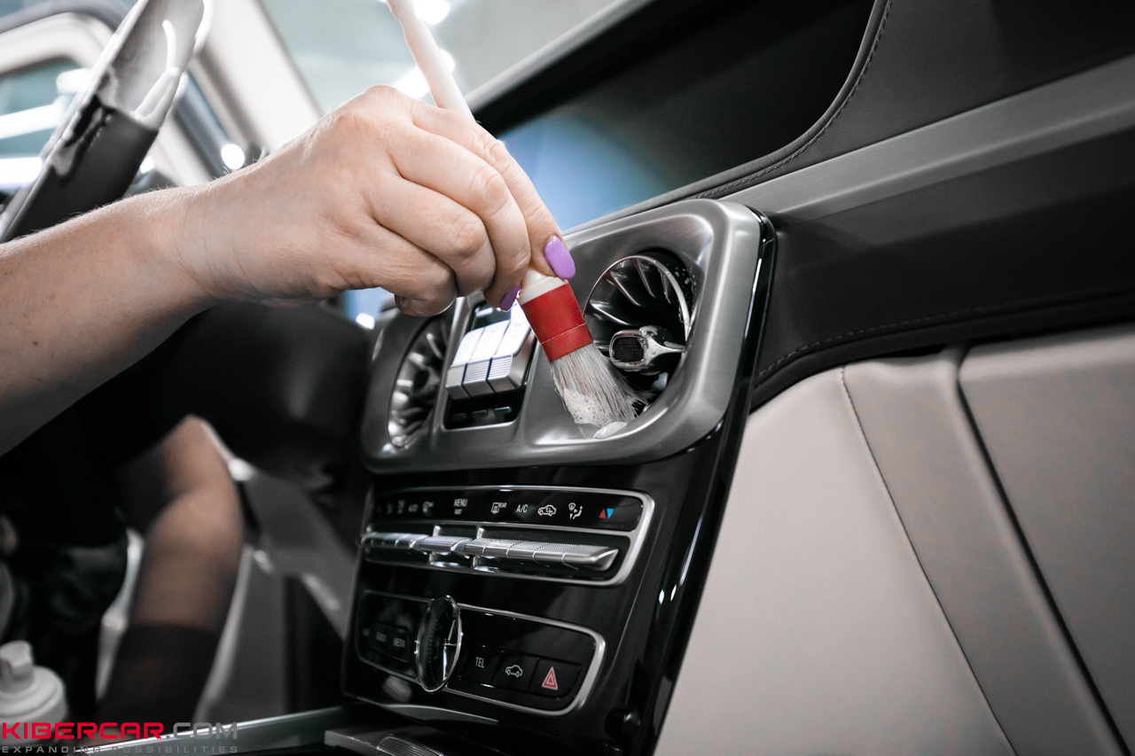 В наш детейлинг-центр поступил роскошный Mercedes-Benz G-Класс с изысканным светлым салоном, который потерял свою первоначальную чистоту. Регулярное использование автомобиля оставило следы в виде потемнений, въевшейся грязи и мелких пятен на коже и текстильных элементах интерьера. Мы провели комплексную химчистку, используя премиальные составы и профессиональное оборудование, чтобы вернуть салону безупречный вид.