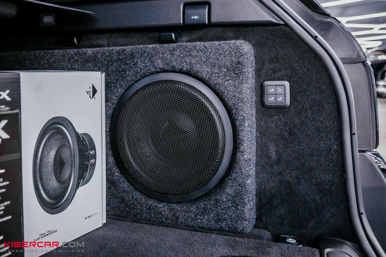 Мы проверили работу акустики британского бренда, чтобы определить её сильные и слабые стороны. Среди преимуществ можно назвать хорошее расположение и направление фронтальной акустики. По крайней мере, для штатных аудиосистем это не частое явление. Мидбасы диаметром 20 см стоят ближе к середине двери по высоте, среднечастотные динамики диаметром 10 см стоят вверху дверной обшивки и твитеры 25 мм стоят в уголках за зеркалами с доворотом в середину салона. В остальном все как у всех, большое количество штатных динамиков и наличие разнообразных спецэффектов, не способствующее хорошему звуку. Штатный сабвуфер тоже есть, но это полное недоразумение. Небольшой овальный динамик рядом с запасным колесом, который выдает басс хуже дверного мидбаса.