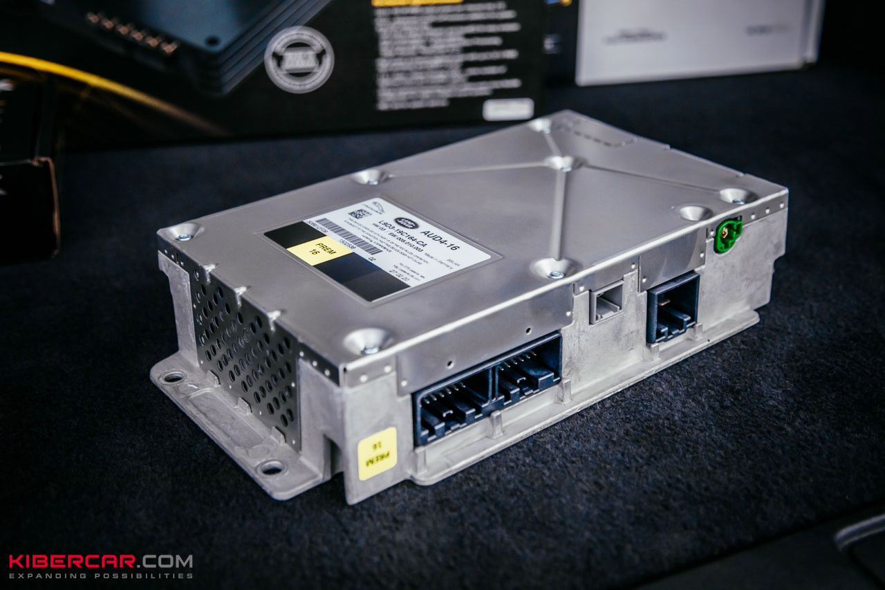 Чтобы улучшить четкость звучания и добиться максимальной детализации, мы использовали специальный адаптер. Он позволяет перенаправить аудиосигнал по шине Ethernet со штатного головного устройства, минуя усилитель. Далее звук будет обрабатываться в процессорном усилителе и выводиться на новую акустику.