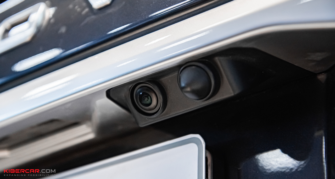 Прокручивая джойстик дальше, появляется изображение заднего вида. Также присутствуют парковочные линии, можно подъехать максимально близко вплоть до бампера. Опция идеальна для крупных машин и с прицепами.