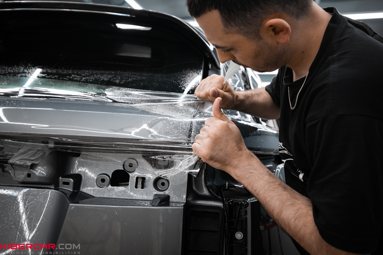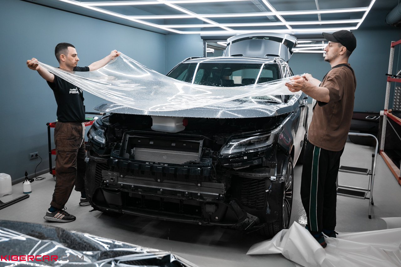 Решение: оклейка кузова Land Rover Range Rover Velar антигравийной пленкой из полиуретана