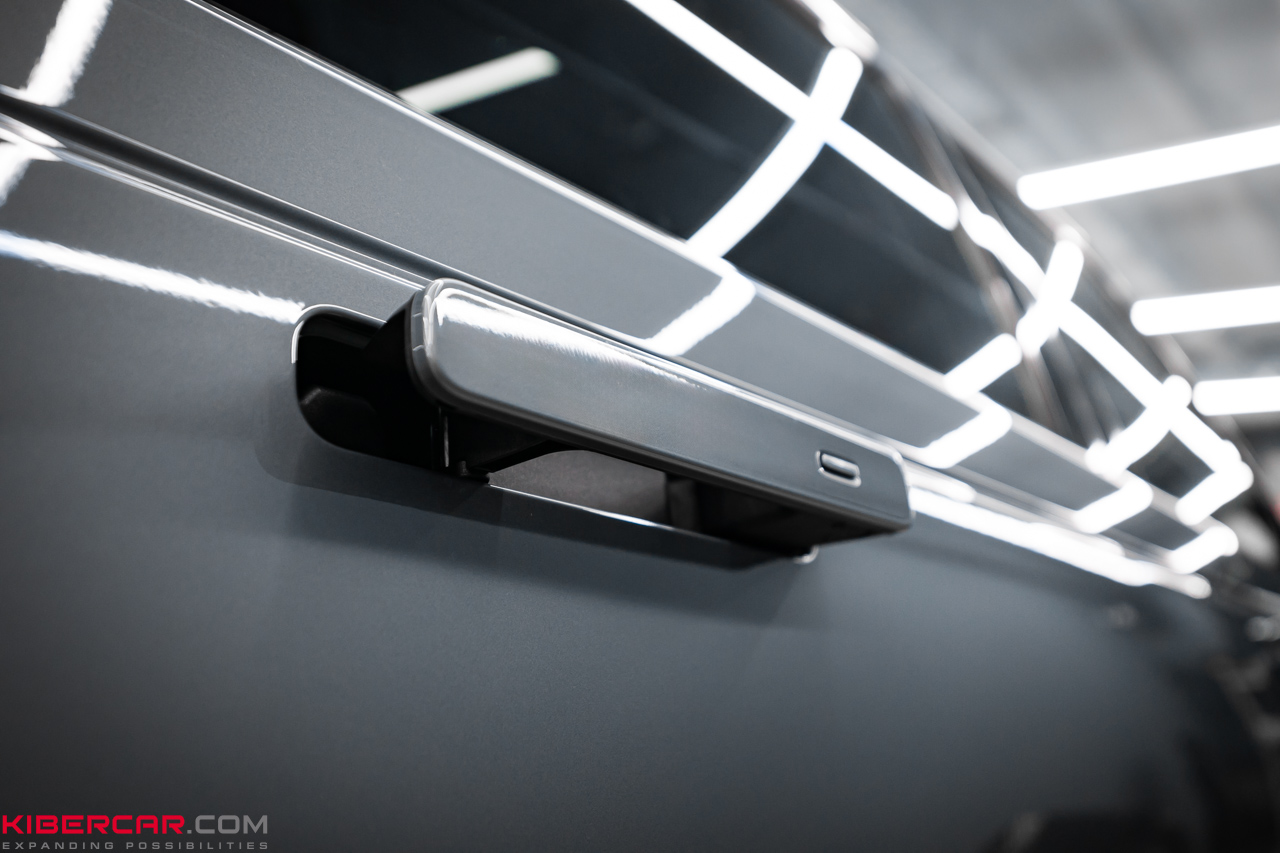 Оклейка выполнялась «мокрым» способом. Мы сбрызнули поверхность кузова и пленку при помощи пульверизатора, а затем уложили материал, и выгнали остатки жидкости наружу. Команда выполняет уже не первый такой заказ, поэтому действовали аккуратно и точно. Предлагаем посмотреть фотоотчет, чтобы оценить результат: пленка никак не привлекает внимания, лишь только придает кузову дополнительный блеск.