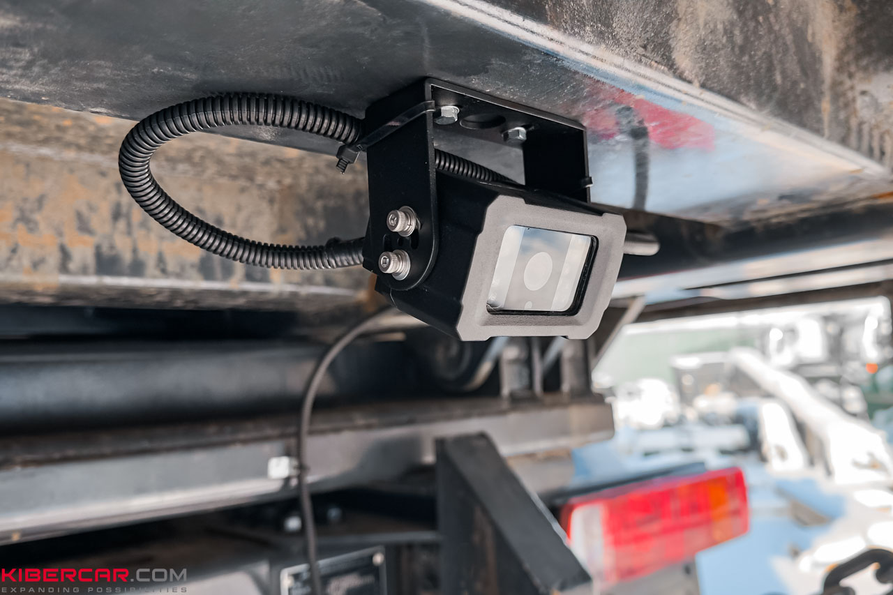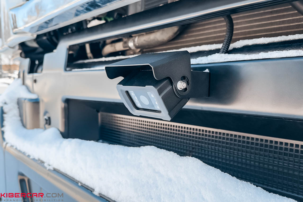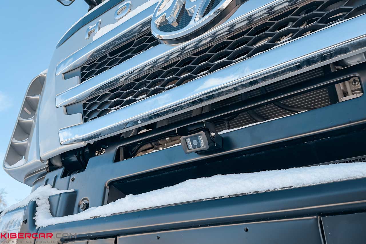 Мы установили 4 камеры со специальной подсветкой так, чтобы они обеспечили максимальный обзор в любых погодных и дорожных условиях. Под решеткой радиатора над номерным знаком самосвала появилась камера переднего вида, защищенная дополнительным козырьком. Кроме того, объектив закрыт сверхпрочным стеклом. Боковые камеры закреплены на зеркалах, а камера заднего вида размещается сзади под грузовым отделением самосвала.