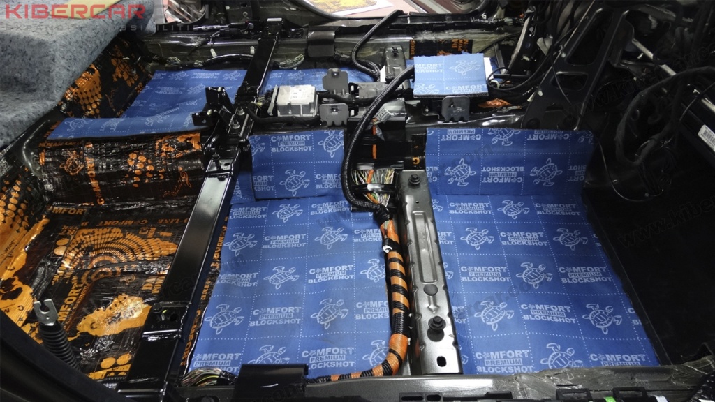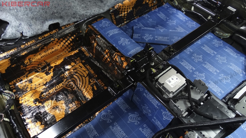 Наносили шумку в три слоя из виброизолирующего покрытия, шумоизоляционной мембраны, а также внешнего звукоизолирующего покрытия ComfortMat Blockator.