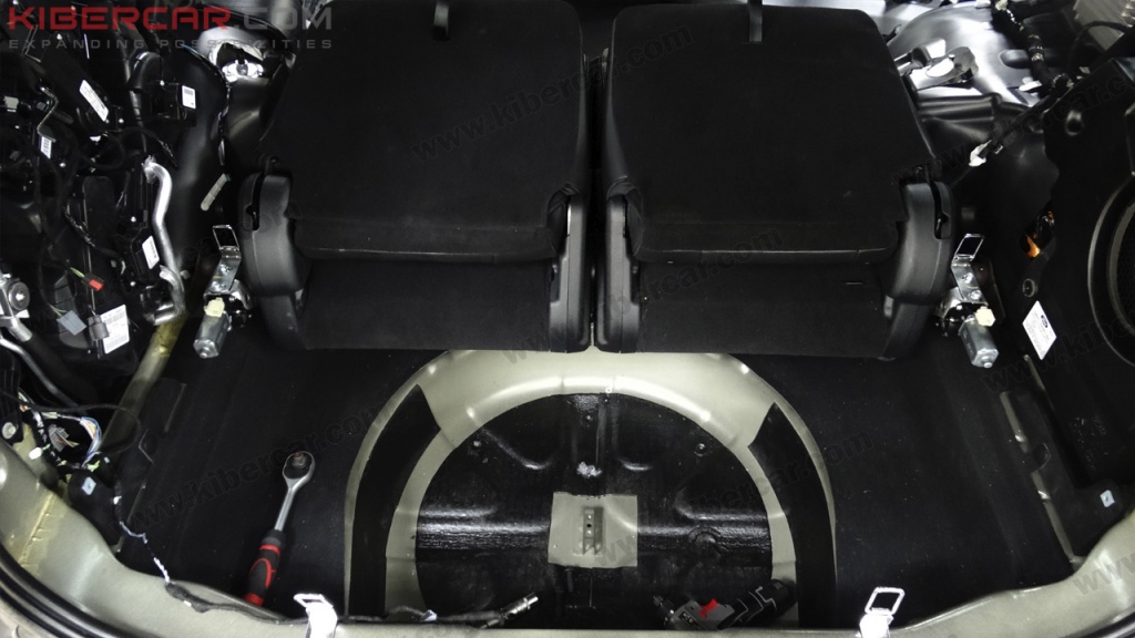 Спустя несколько действий, включающие в себя первичную обработку (вынос сидений, консоли, ковров и обшивки), а также обезжиривание металла, мы приступили к делу. Основной претензией у клиента был шум в нижней части автомобиля, а соответственно, работа подразумевала полное покрытие днища за исключением арок – в них попросту были пустые полости, поэтому шум в области был исключен, да и не нужно это по причине того, что трехслойная изоляция не позволит собрать заново обшивку. Это бич конкретно Explorer, на других автомобилях обычно такой сложности не возникает.