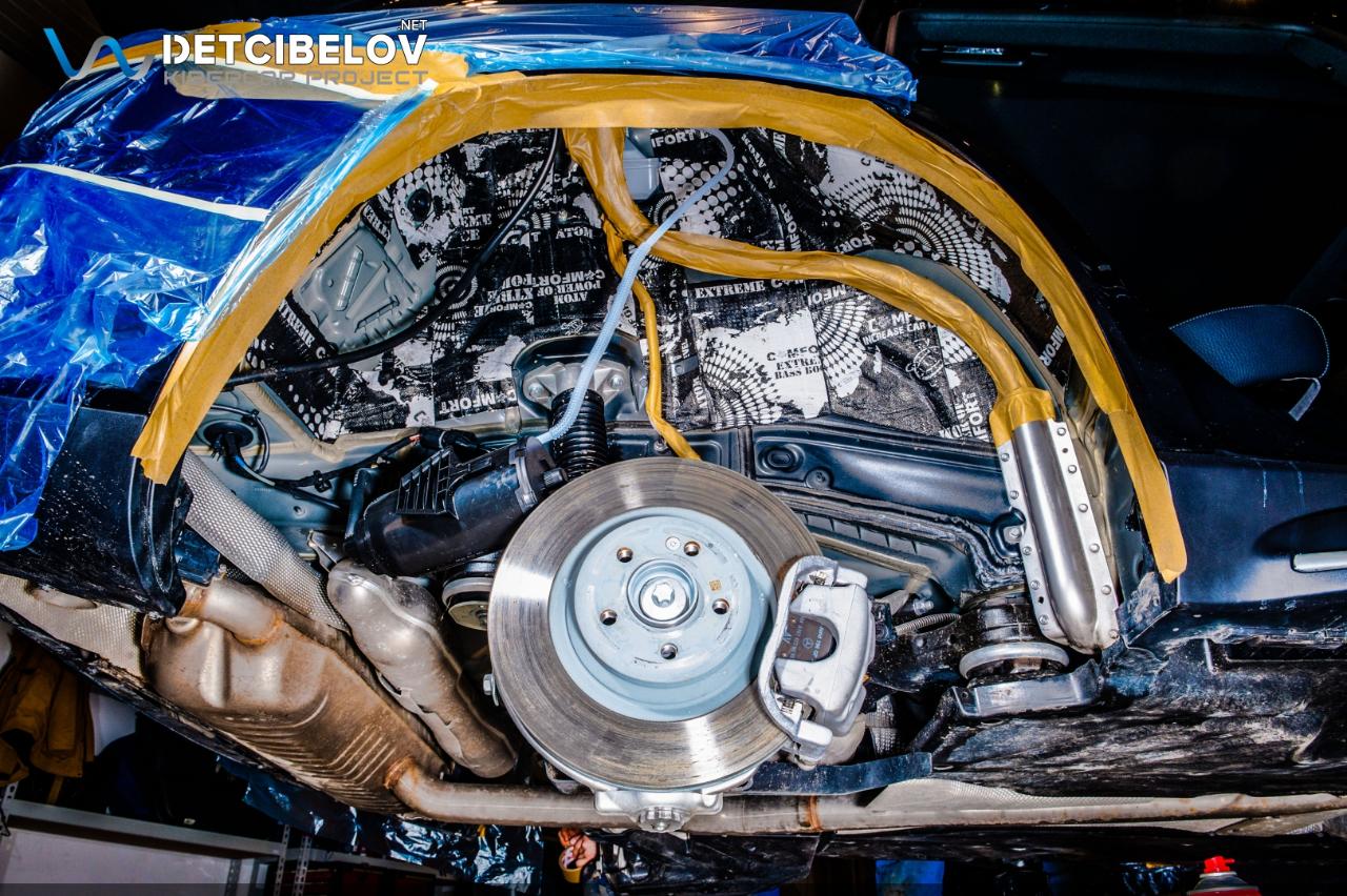 Далее приступаем к самой ответственной части шумоизоляции автомобиля – пола, багажника и внутренних колесных арок. Данный этап начинается с полного демонтажа сидений, ковров, обшивок и т.д. – ничего не должно мешать проводимым работам.