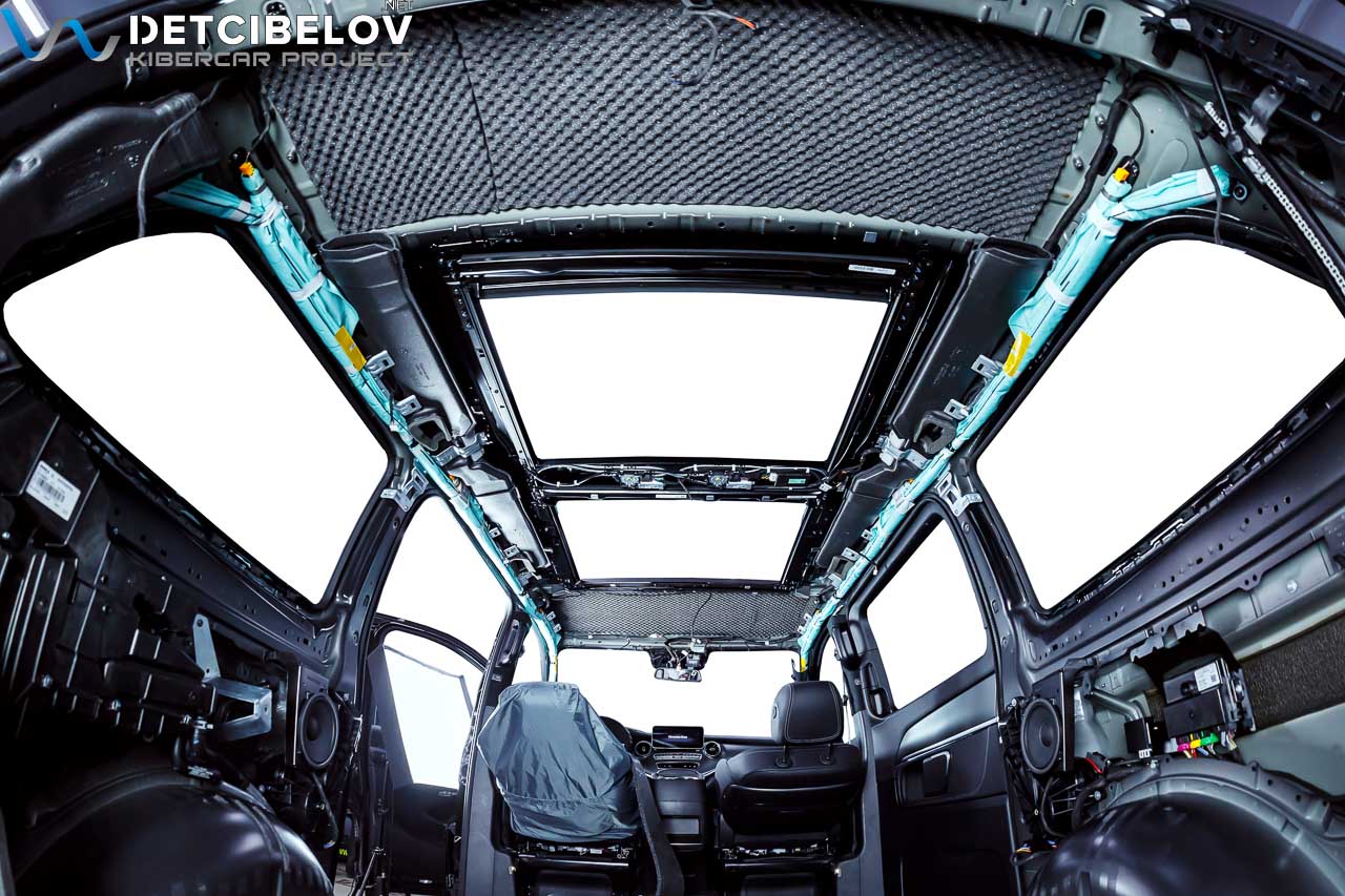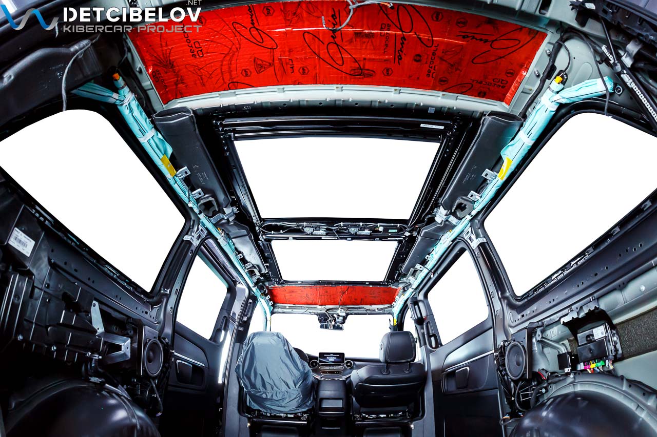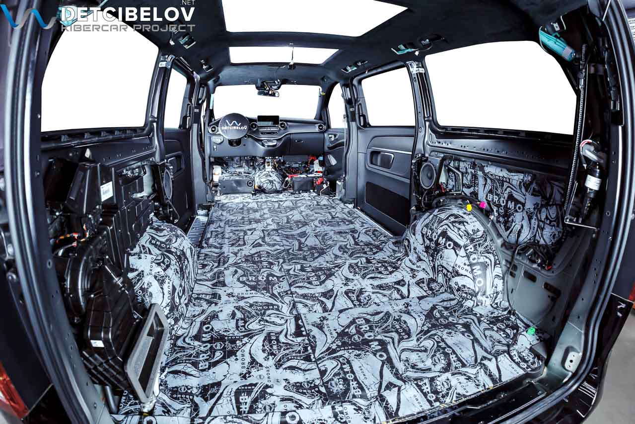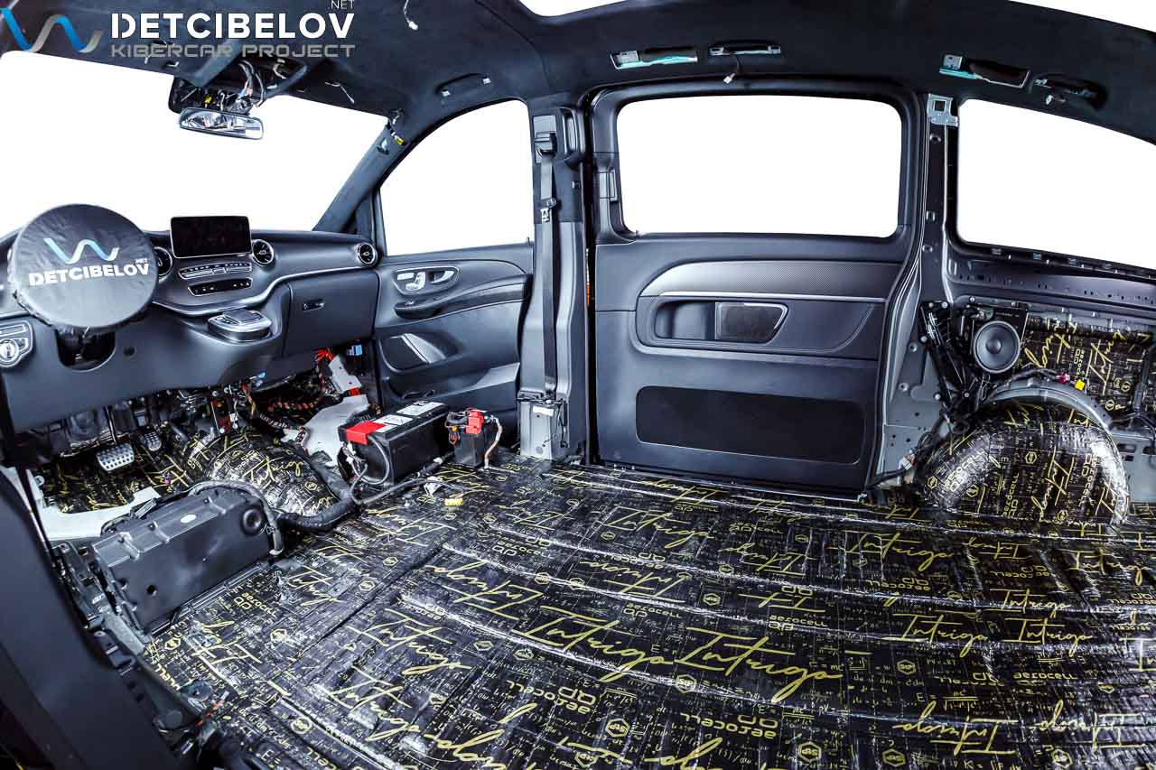 Штатная шумоизоляция Mercedes-Benz V-Класс вызывает много нареканий. Она не вполне выполняет заявленные функции: во время движения слышны и шумы, и вибрации. Производитель не уделил этому аспекту достаточно внимания – слой шумки только один, а на некоторых участках и попросту отсутствует.