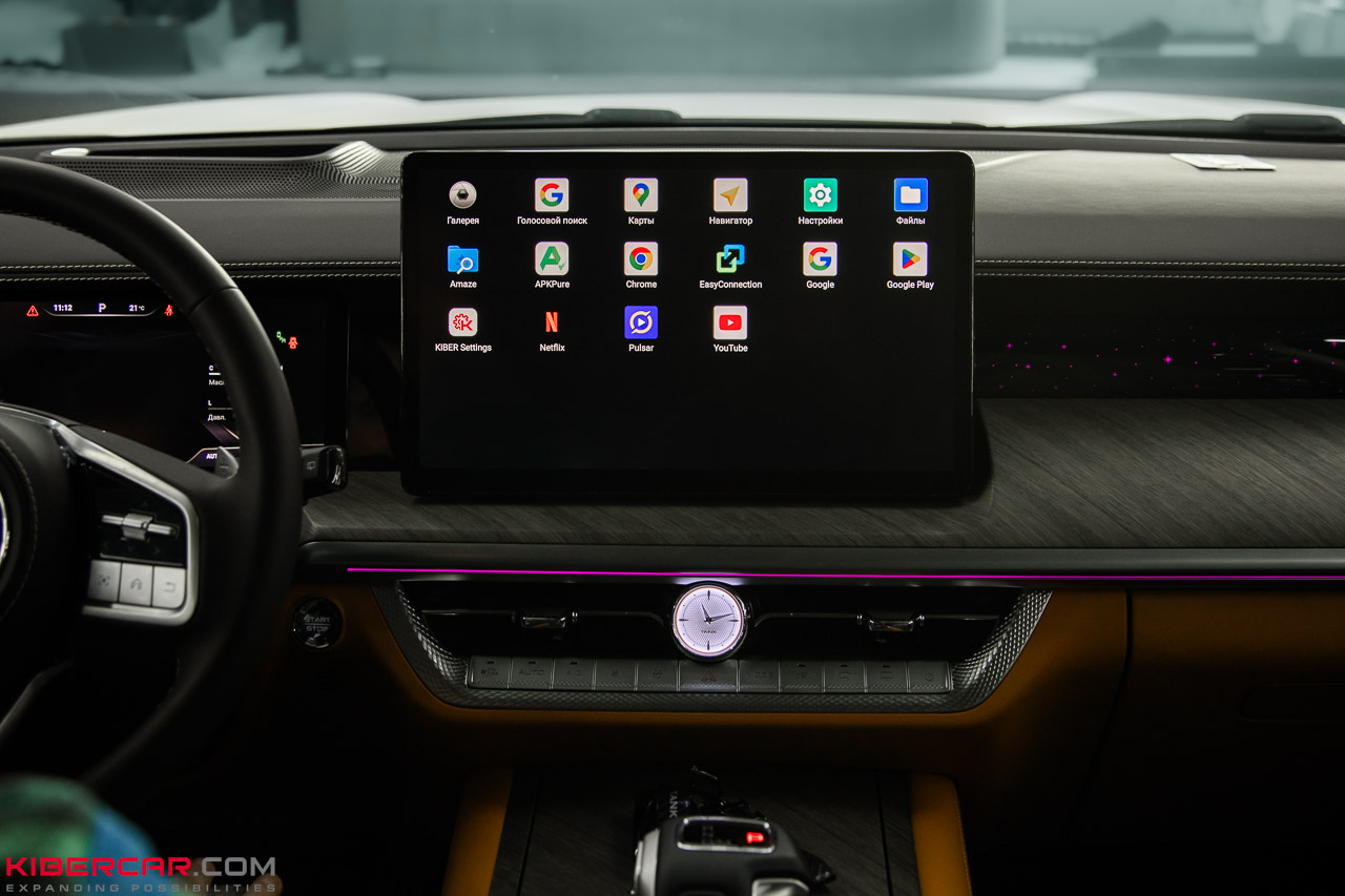 В нашем установочном центре реализовали установку на новый Tank 500 специального блока AirTouch Performance, который позволяет добавить к штатной системе автомобиля новую – на базе ОС Android 10Х. Чтобы перейти к ней, владельцу достаточно удержать одну кнопку на рулевом колесе.
